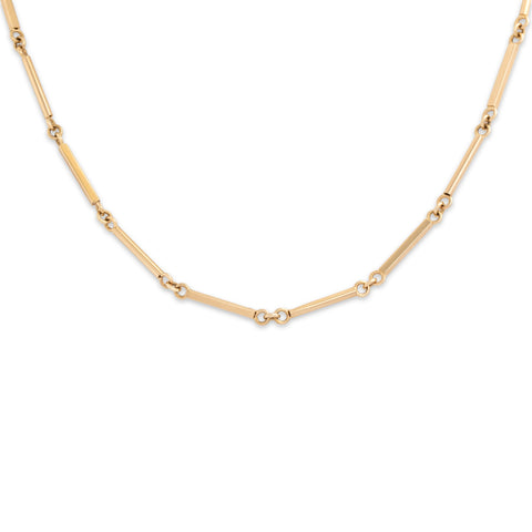Vintage 14k Yellow Gold Sleek Alternating Bar Link Necklace 15"