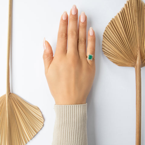 Vintage 14k Yellow & White Gold 1.37ct Synthetic Emerald Natural Diamond Ring 6.00