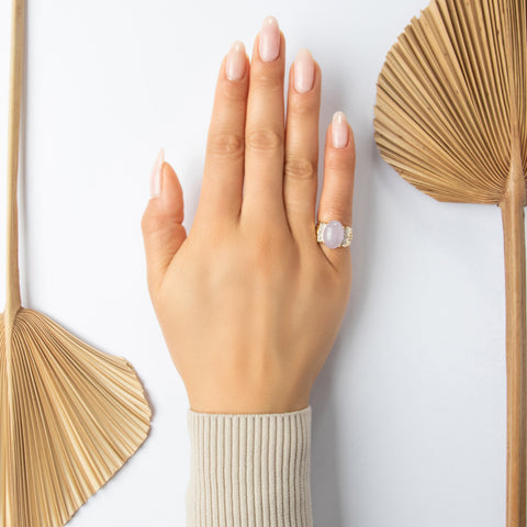 Vintage 14k Yellow Gold 5.48ct Lavender Jade Diamond Greek Key Shoulder Ring 5.00