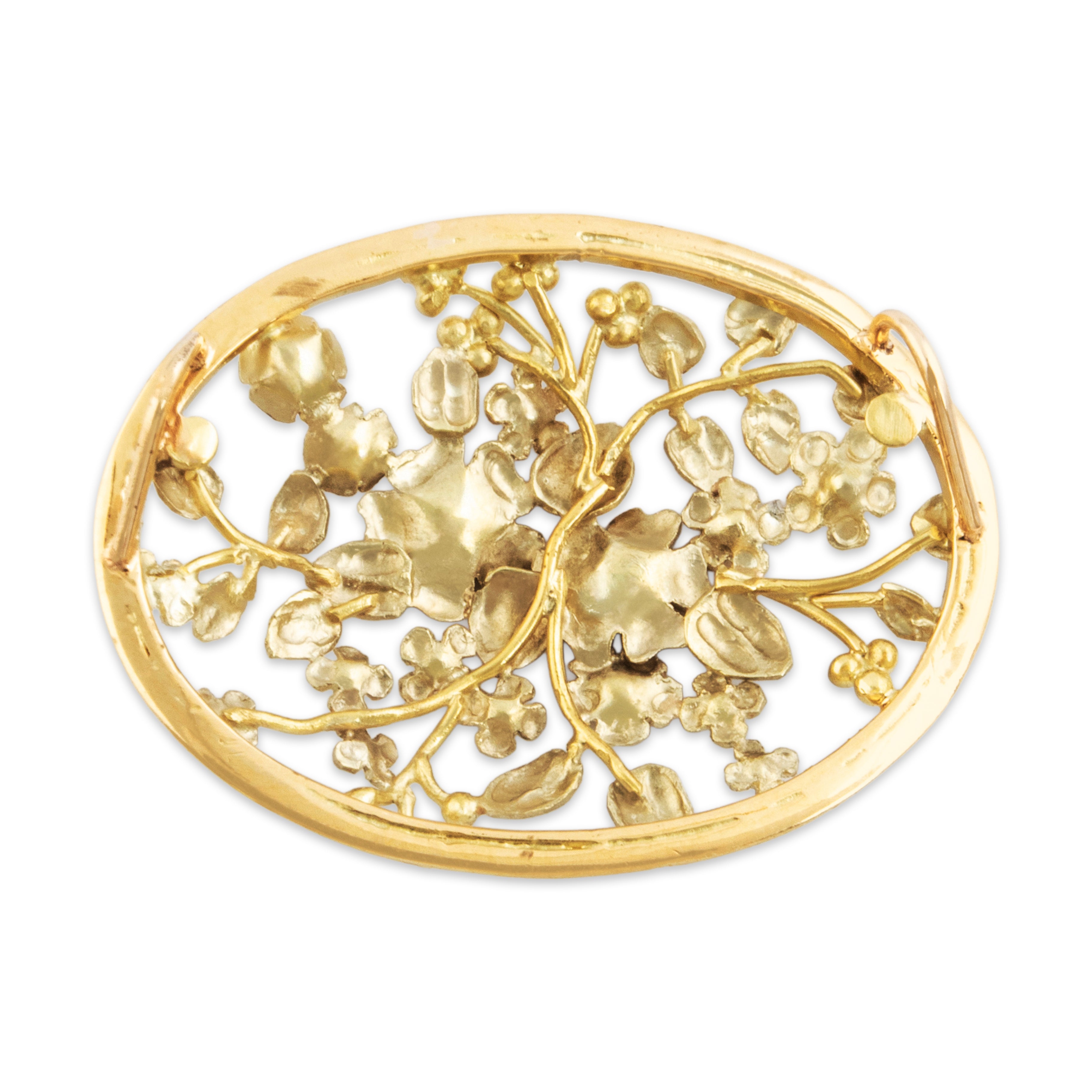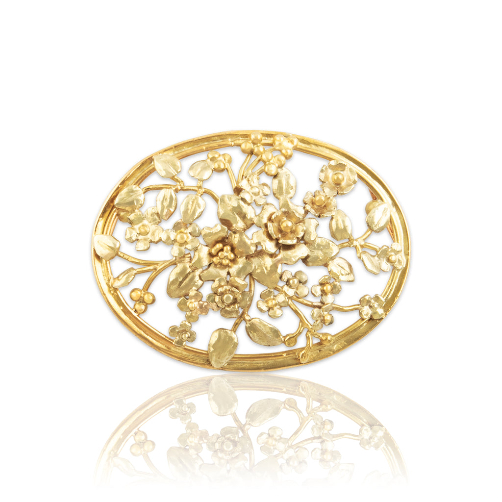 Antique Large 18k Yellow Gold Lovely Bouquet of Flowers Slide Pendant