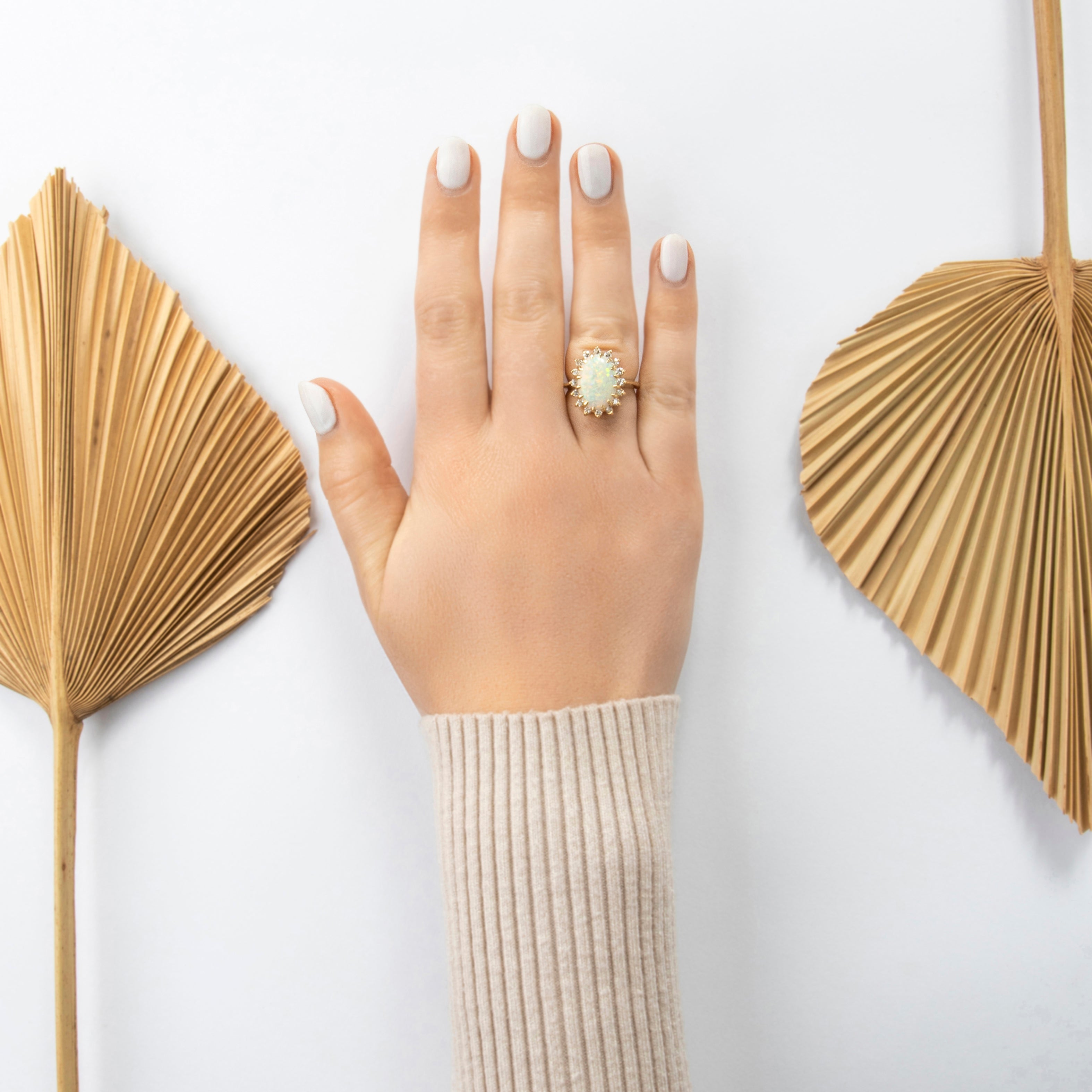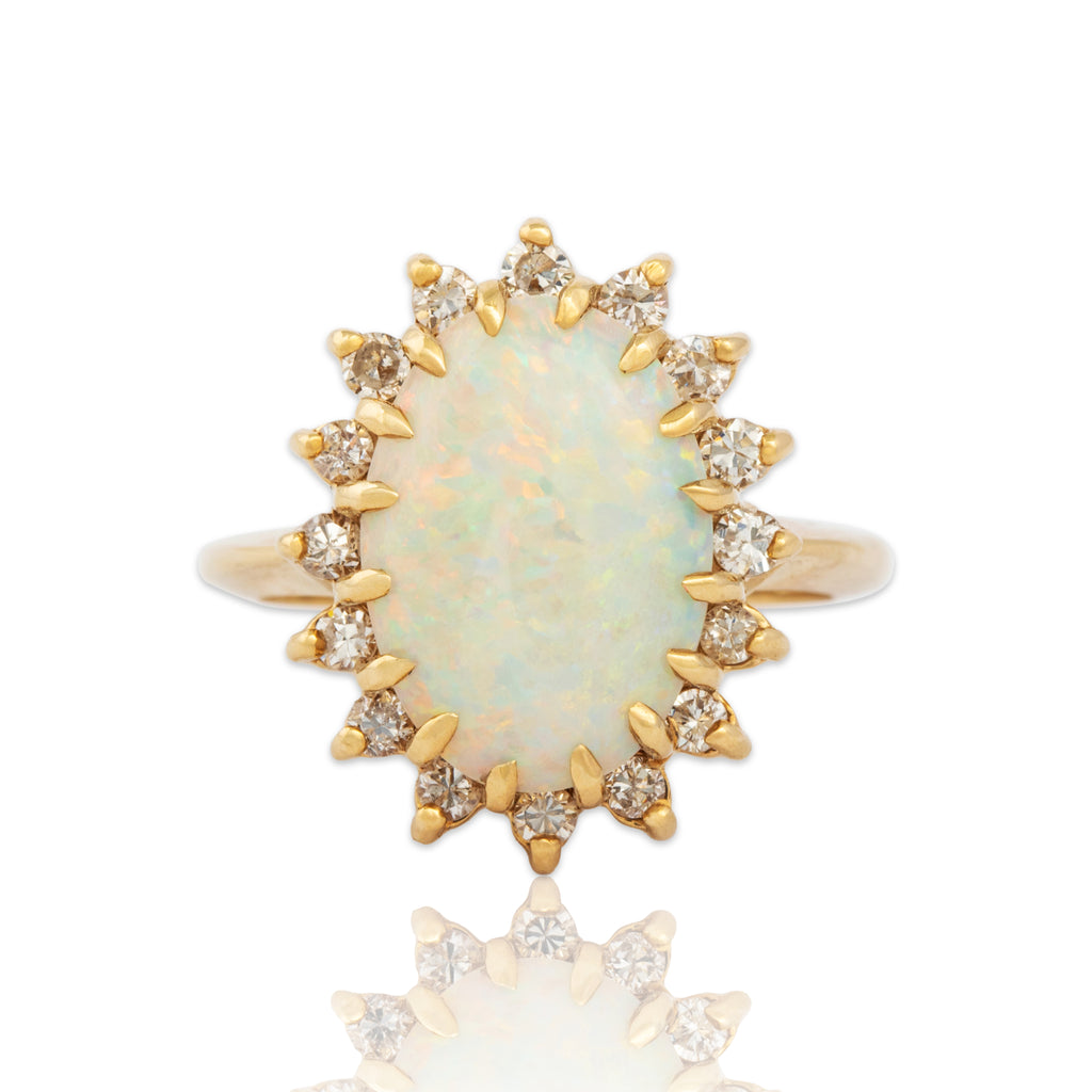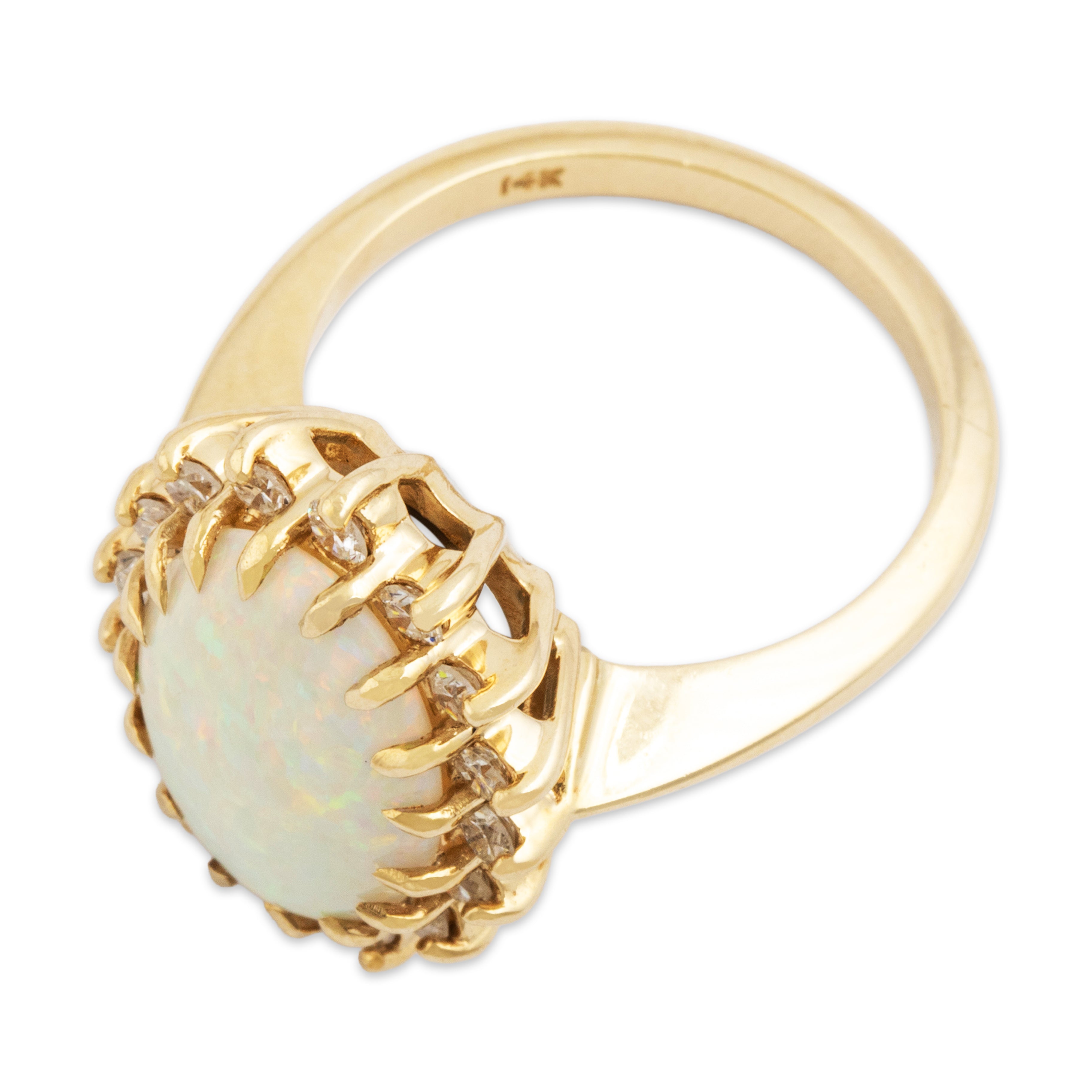 Condition: Very good condition, not eye-visible, seen under 10x magnification: minor surface wear to opal; minor irregularities to gold