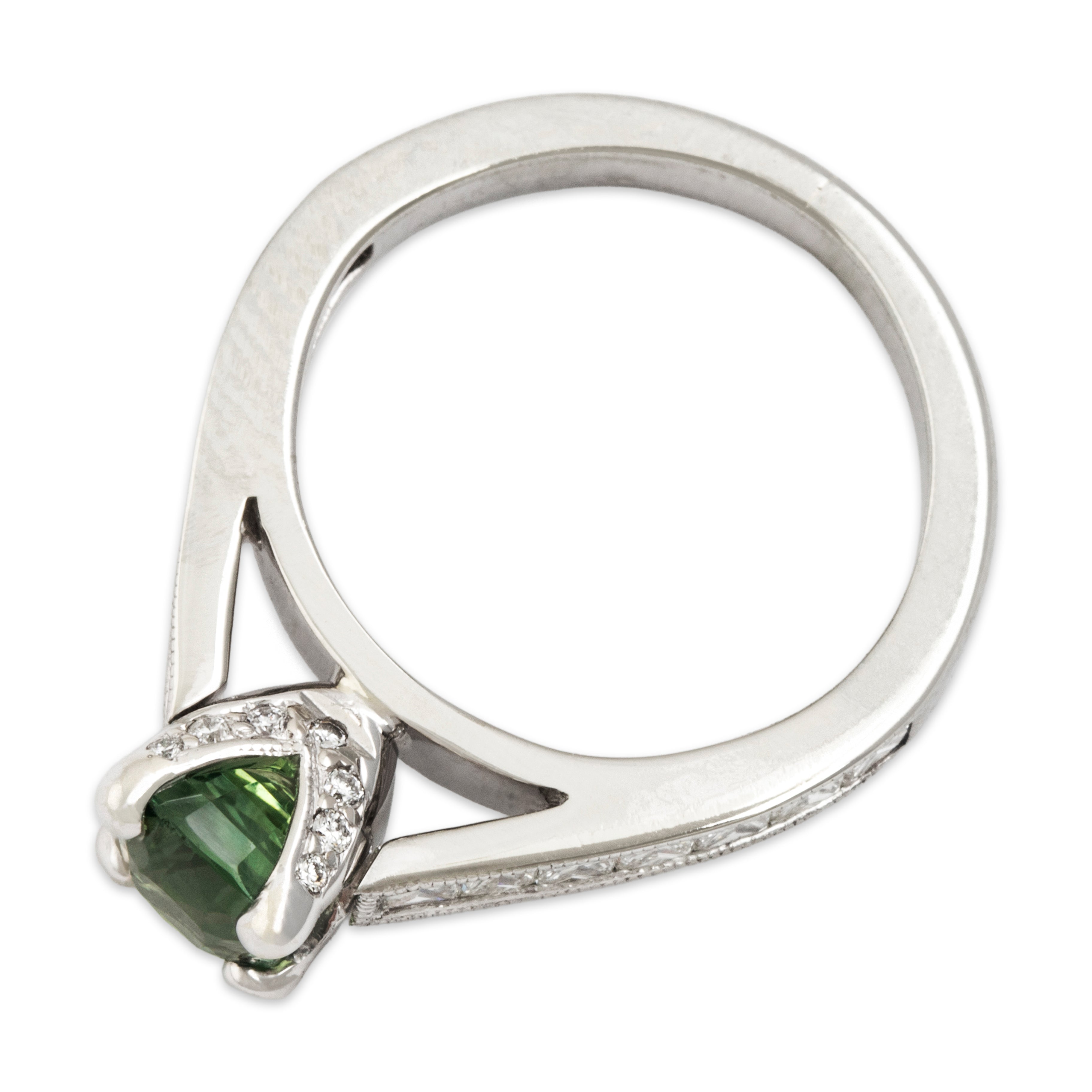 Condition: Very good condition, not eye-visible, seen under 10x magnification: minor nicks to facets, girdle of green sapphire