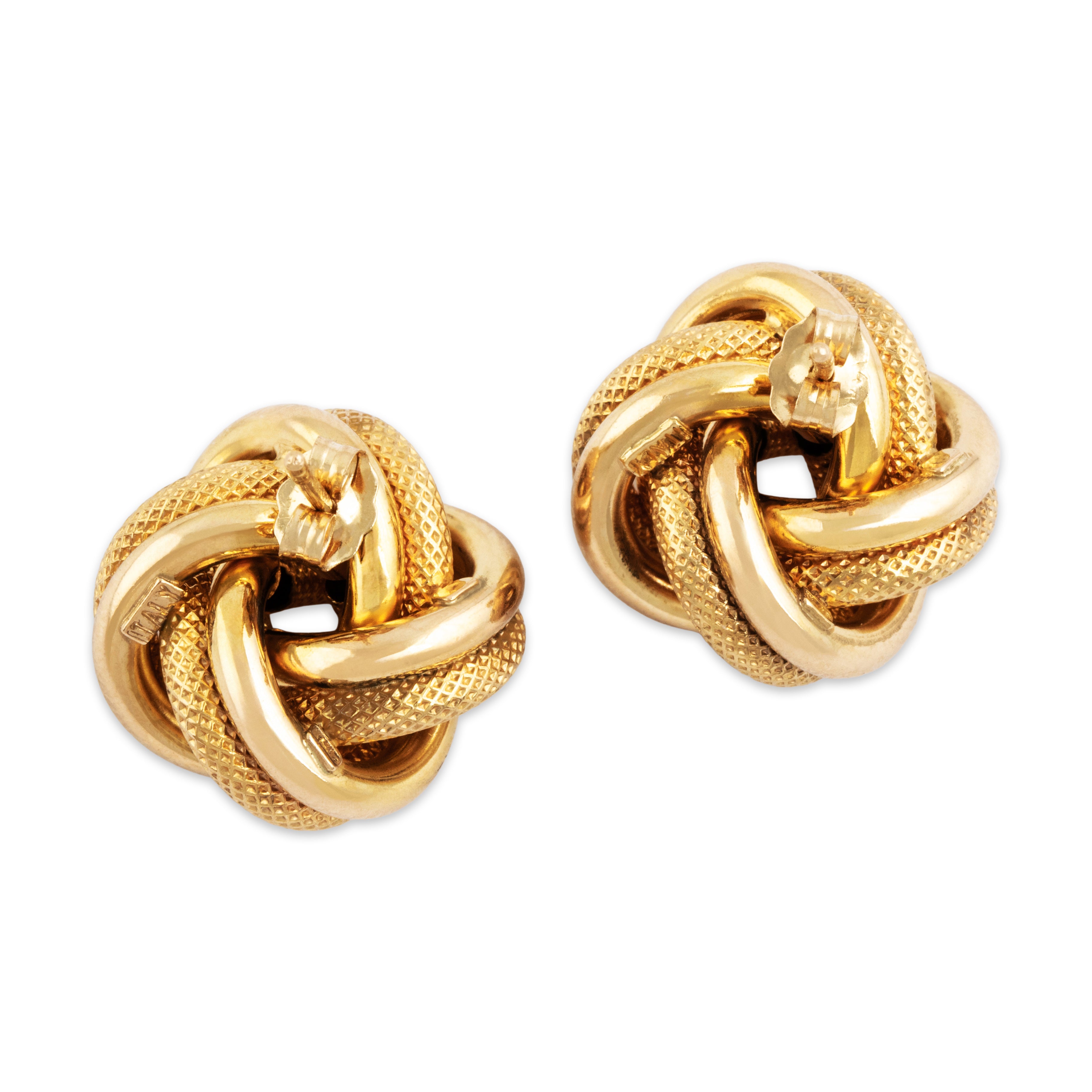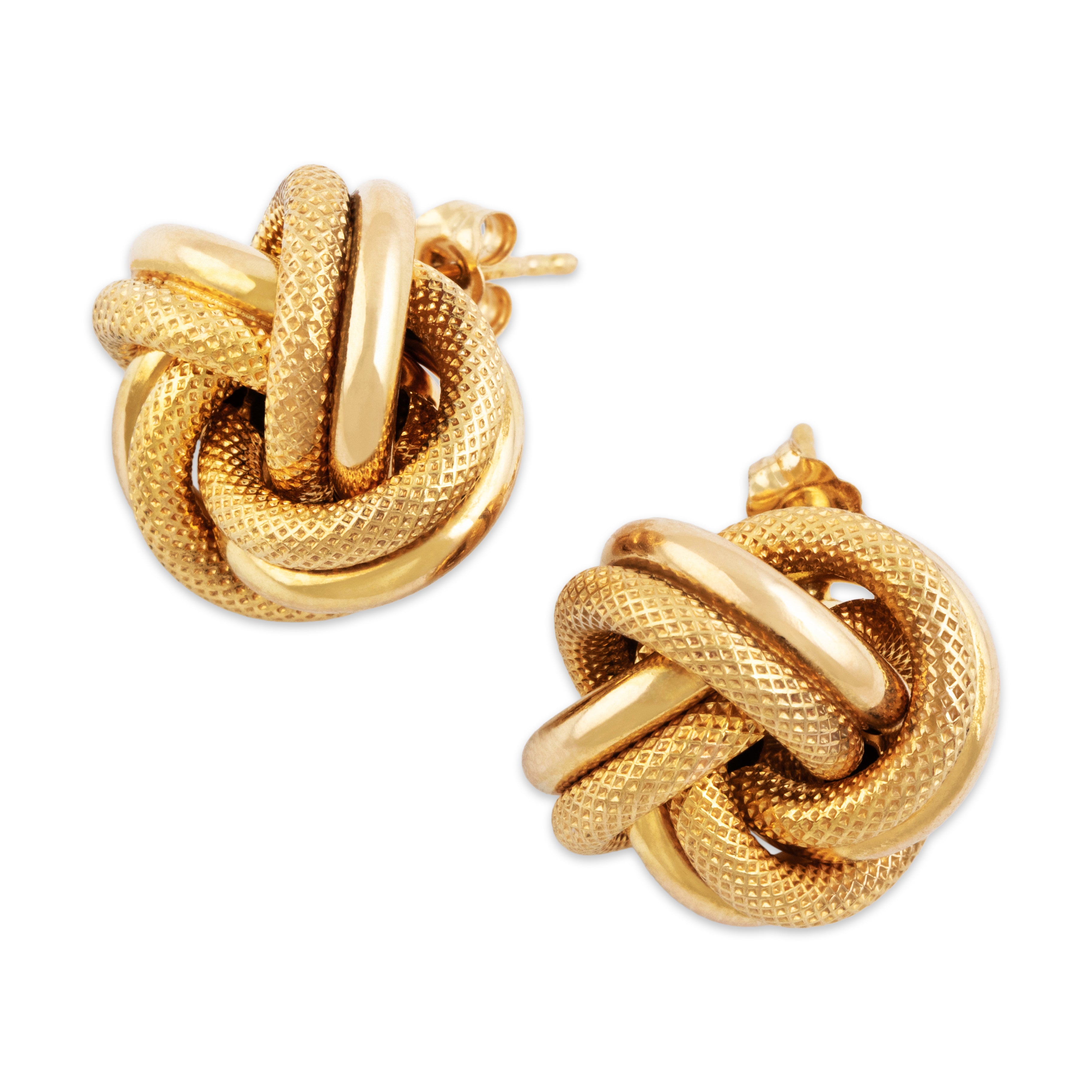 Vintage Italian 14k Yellow Gold Large Textured Knots Stud Earrings