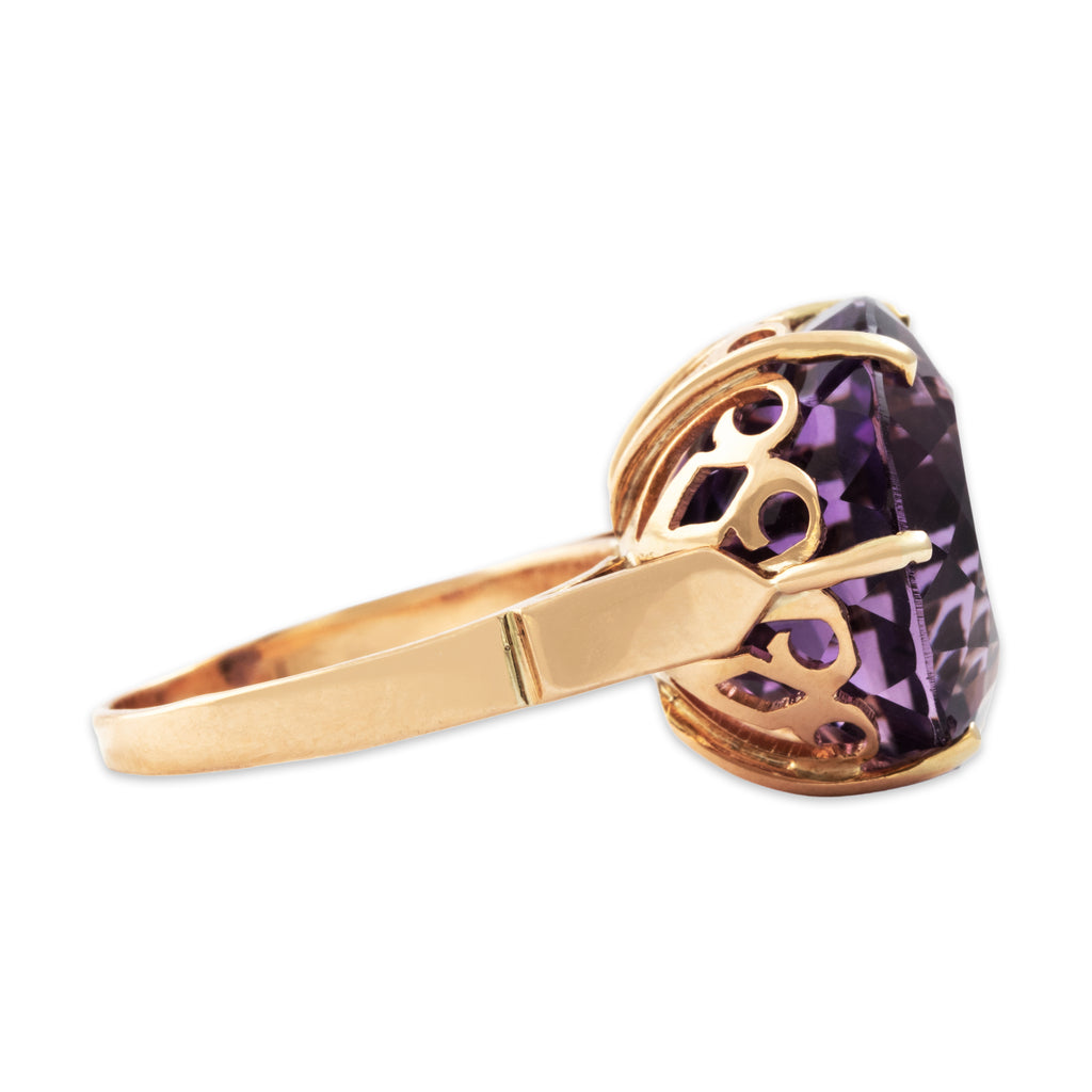 Condition: Very good condition, not eye-visible, seen under 10x magnification: minor surface abrasions, nick to culet of amethyst; minor mark to shank from previous resizing
