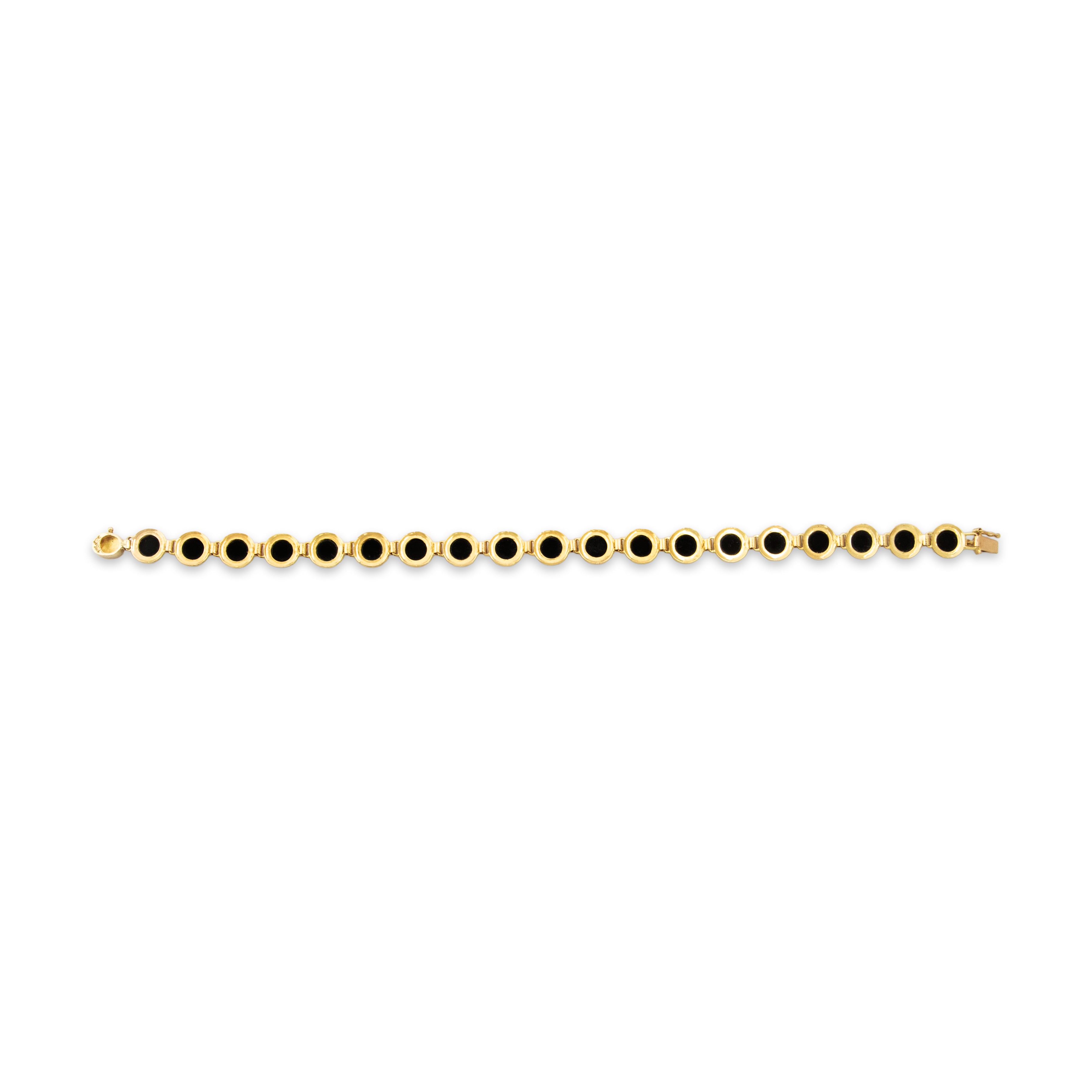 Condition: Very good condition, not eye-visible, seen under 10x magnification: very minor wear to onyx; minor wear to gold