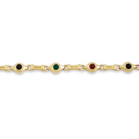 Vintage 14k Yellow Gold Black & Green Onyx Carnelian Cabochon Link Bracelet 7"