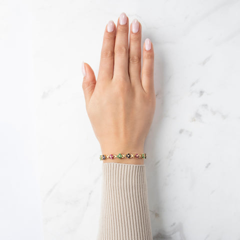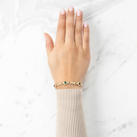 Vintage 14k Yellow Gold Ruby Sapphire Emerald Darling Floral Bracelet 7.25"