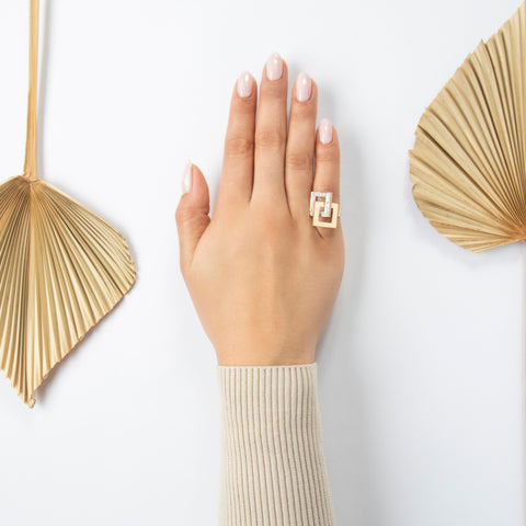 Vintage 14k Yellow & White Gold .354cttw Diamond Interlocked Statement Ring 6.00