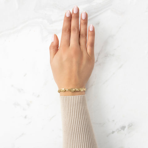 Vintage 14k Yellow Gold Sleek Brushed Geometric Link Bracelet 7"