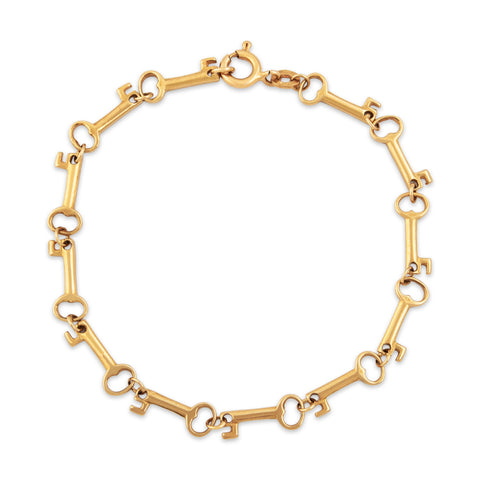 Vintage Italian 18k Yellow Gold Skeleton Key Bracelet 7.5"