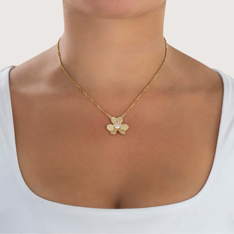 Vintage Stunning 18k Yellow Gold 1.758cttw Diamond Clover Necklace 16.5"