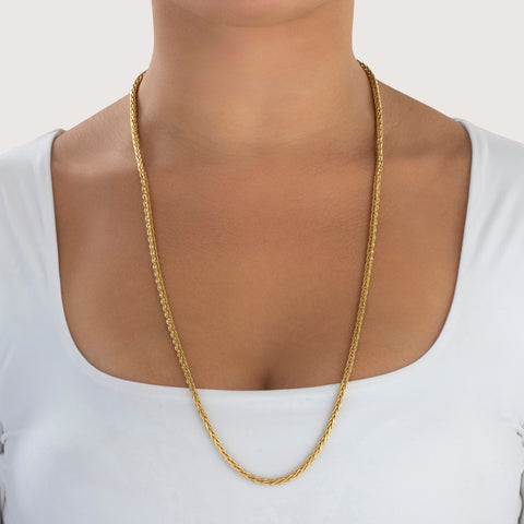 Vintage Italian 14k Yellow Gold Incredible Long Wheat Chain Necklace 30"