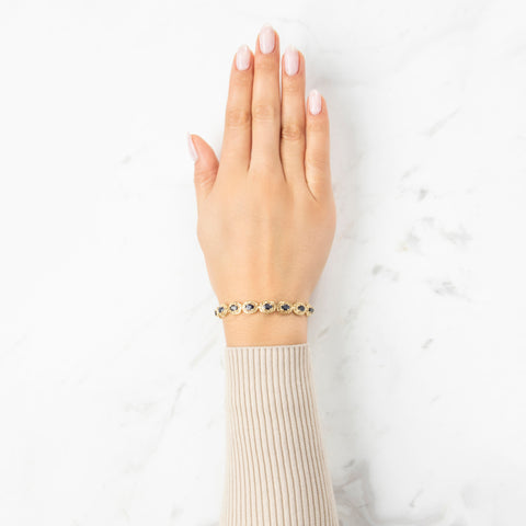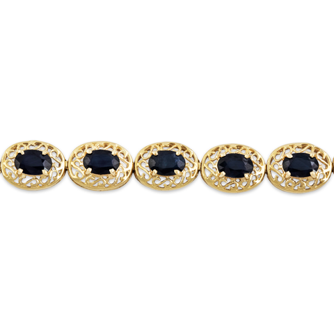 Vintage 10k Yellow Gold 9.35cttw Dark Blue Sapphire Open Oval Link Bracelet 7"