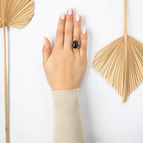 Vintage Large 14k Rosy Yellow Gold 26ct Amethyst Fabulous Cocktail Ring 7.00