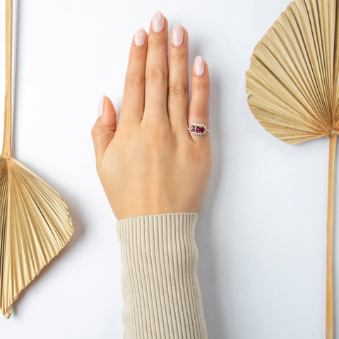 Vintage 18k Yellow & White Gold 1.1cttw Ruby Diamond Oval Trio Halo Ring 4.50