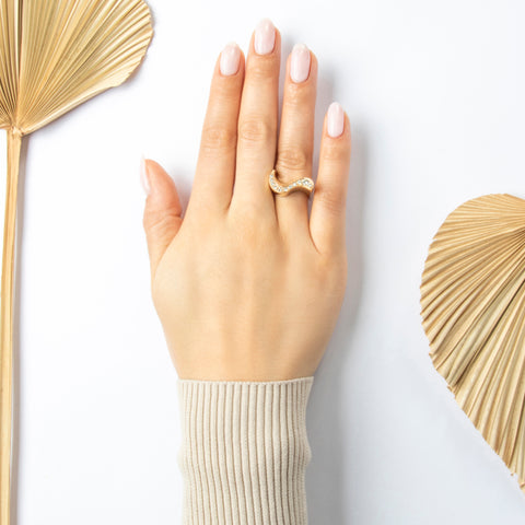 Vintage Heavy 14k Yellow Gold .263cttw Diamond Sculptural Wave Ring 8.00
