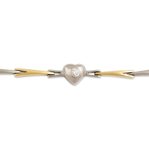 Vintage 14k White & Yellow Gold Diamond Gleaming Heartthrob Bracelet 7"