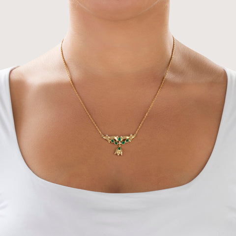 Vintage 14k Yellow Gold 5.6cttw Emerald 1.248cttw Diamond Necklace 16.25"