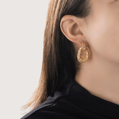 Vintage Large 14k Yellow Gold Textured Brutalist Doorknocker Dangle Earrings