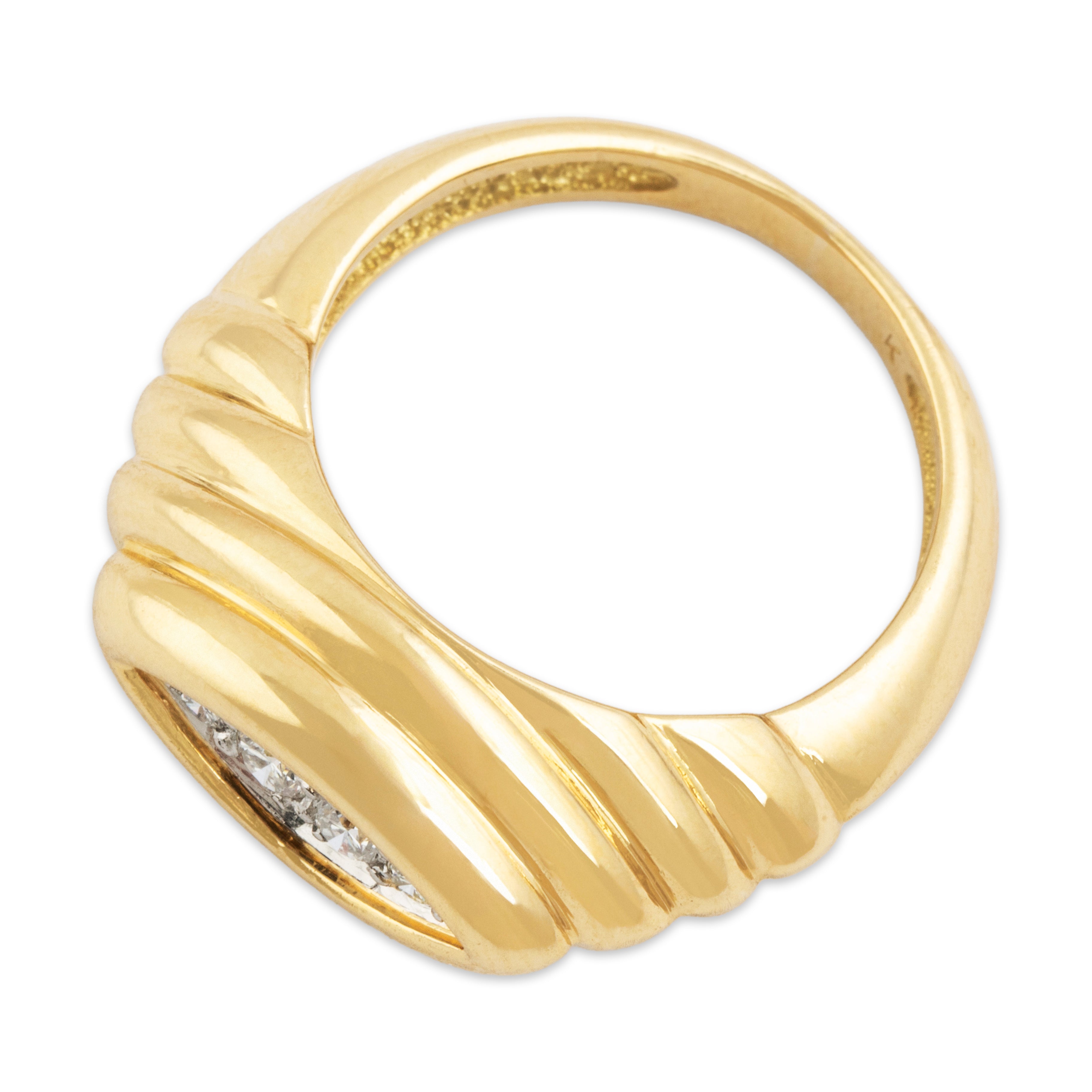 Vintage Heavy 18k Yellow Gold Diamond Chic East-West Ribbed Ring 5.50
