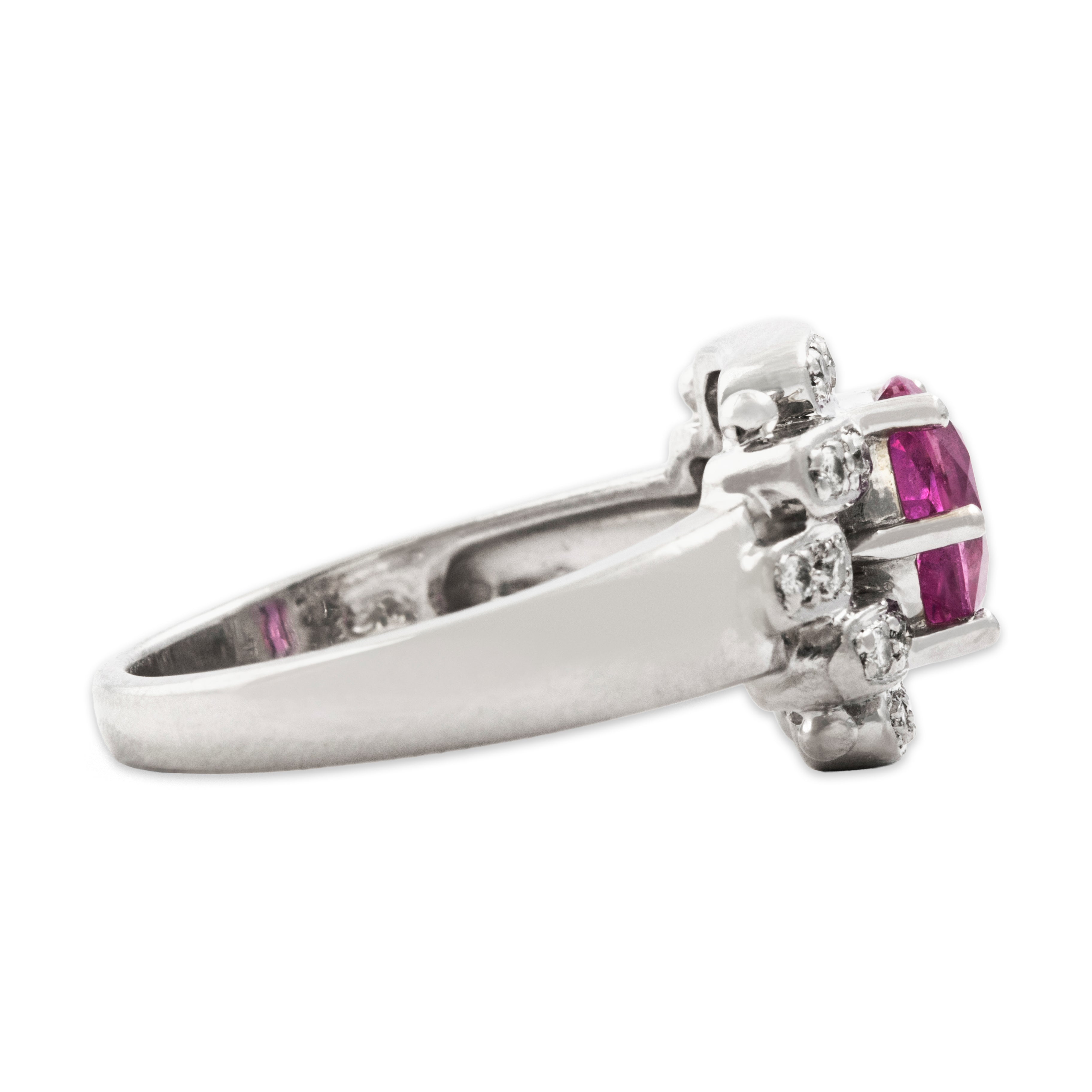 Condition: Excellent condition, not eye-visible, seen under 10x magnification: tiny nicks to girdle of pink sapphire