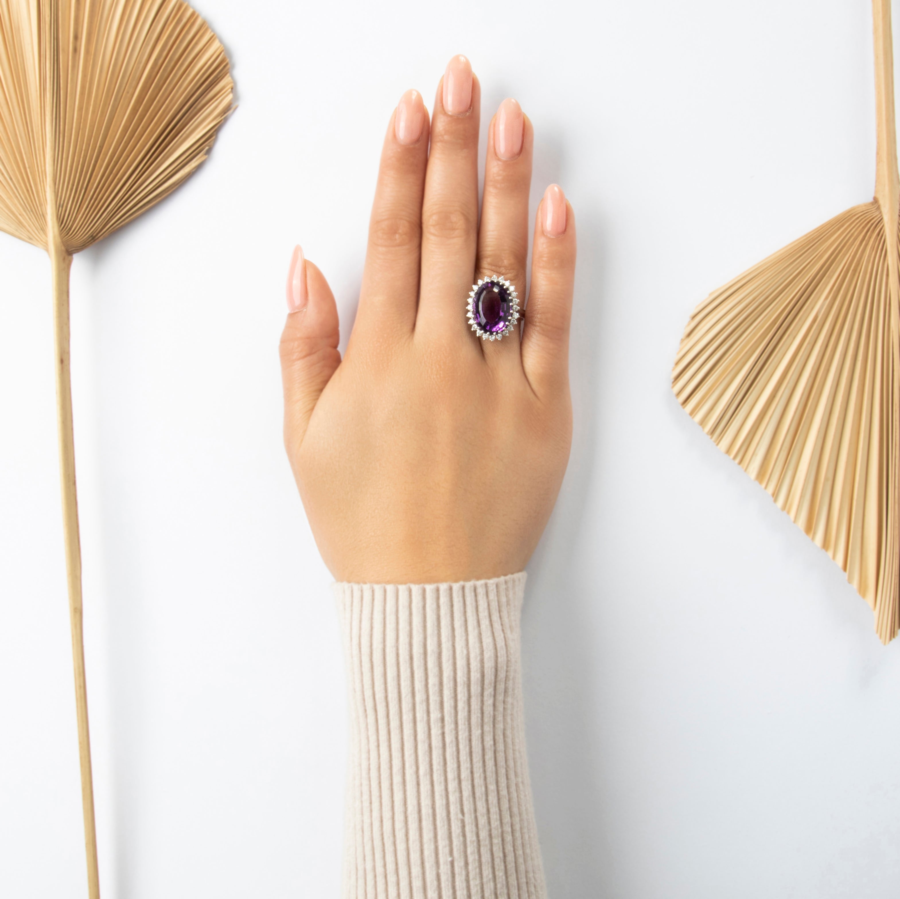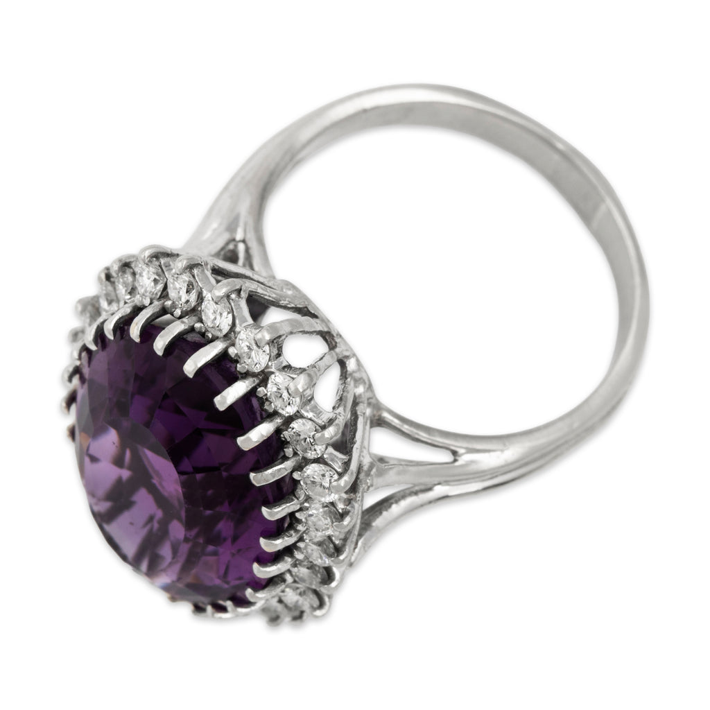 Condition: Very good condition, minor surface wear to gold and amethyst, mark inside shank from previous resizing