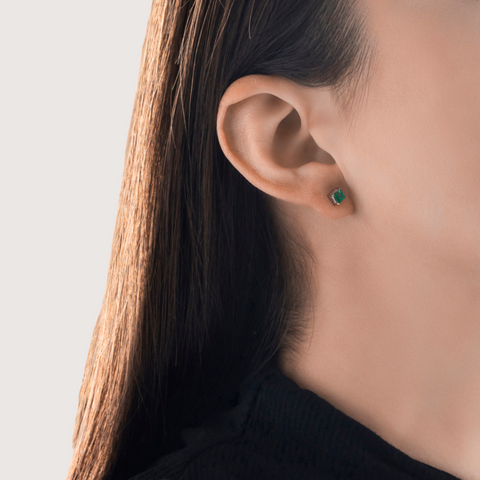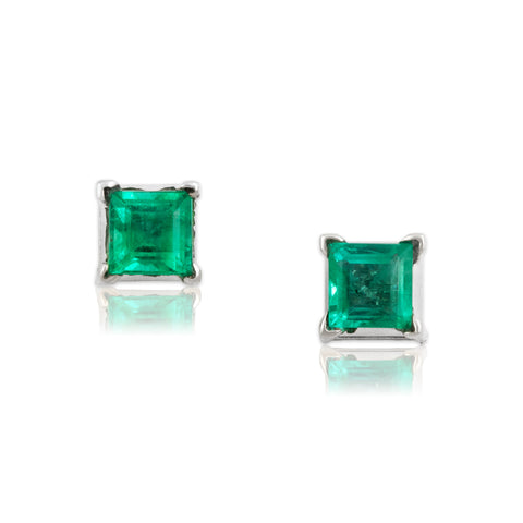 Vintage Small 14k White Gold Emerald Dainty Square Stud Earrings