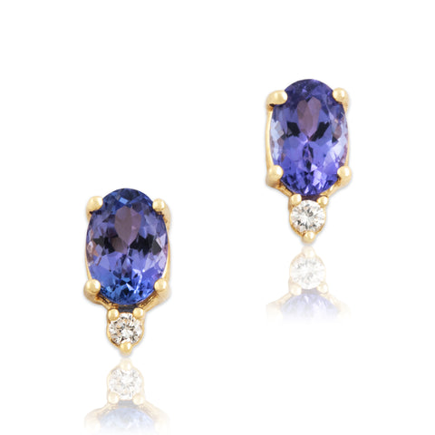 Vintage 14k Yellow Gold 1cttw Tanzanite Diamond Pretty Oval Duo Stud Earrings