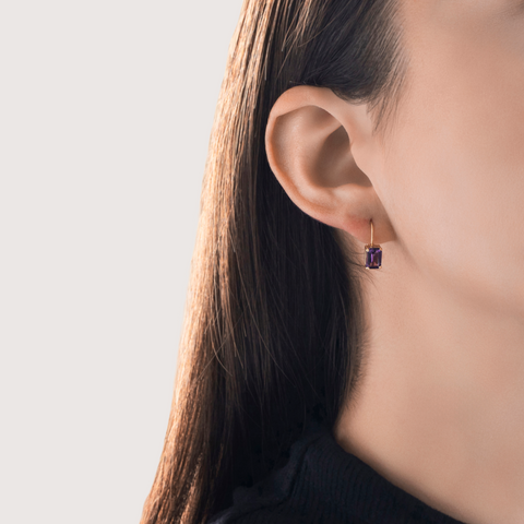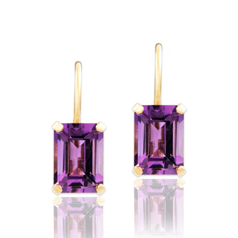 Vintage 14k Yellow Gold 1.6cttw Amethyst Pretty Emerald-Cut Lever Back Earrings