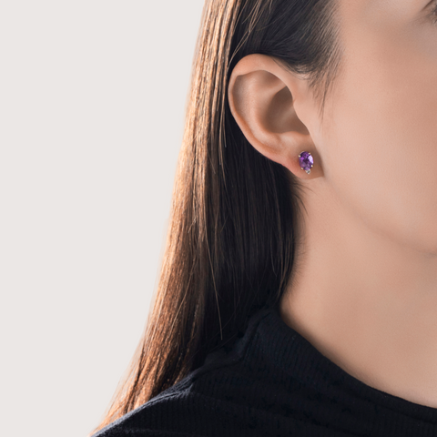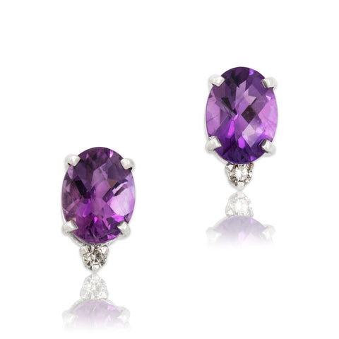 Vintage 14k White Gold 2cttw Amethyst Diamond Checkerboard Stud Earrings