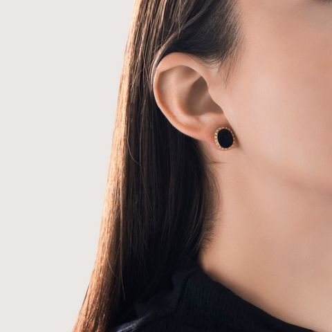 Vintage 14k Yellow Gold Onyx Pretty Framed Oval Stud Earrings