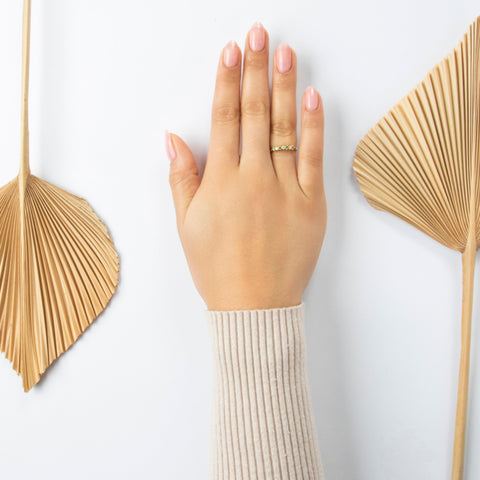 Vintage 14k Yellow Gold Emerald Diamond Delicate Alternating Line Ring 7.25