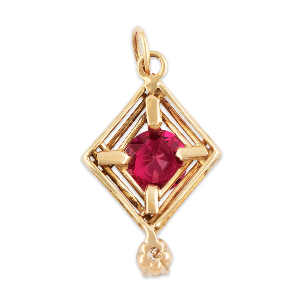 Condition: Excellent condition, not eye-visible, seen under 10x magnification: very minor surface nicks to synthetic ruby