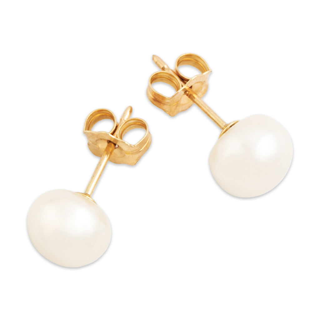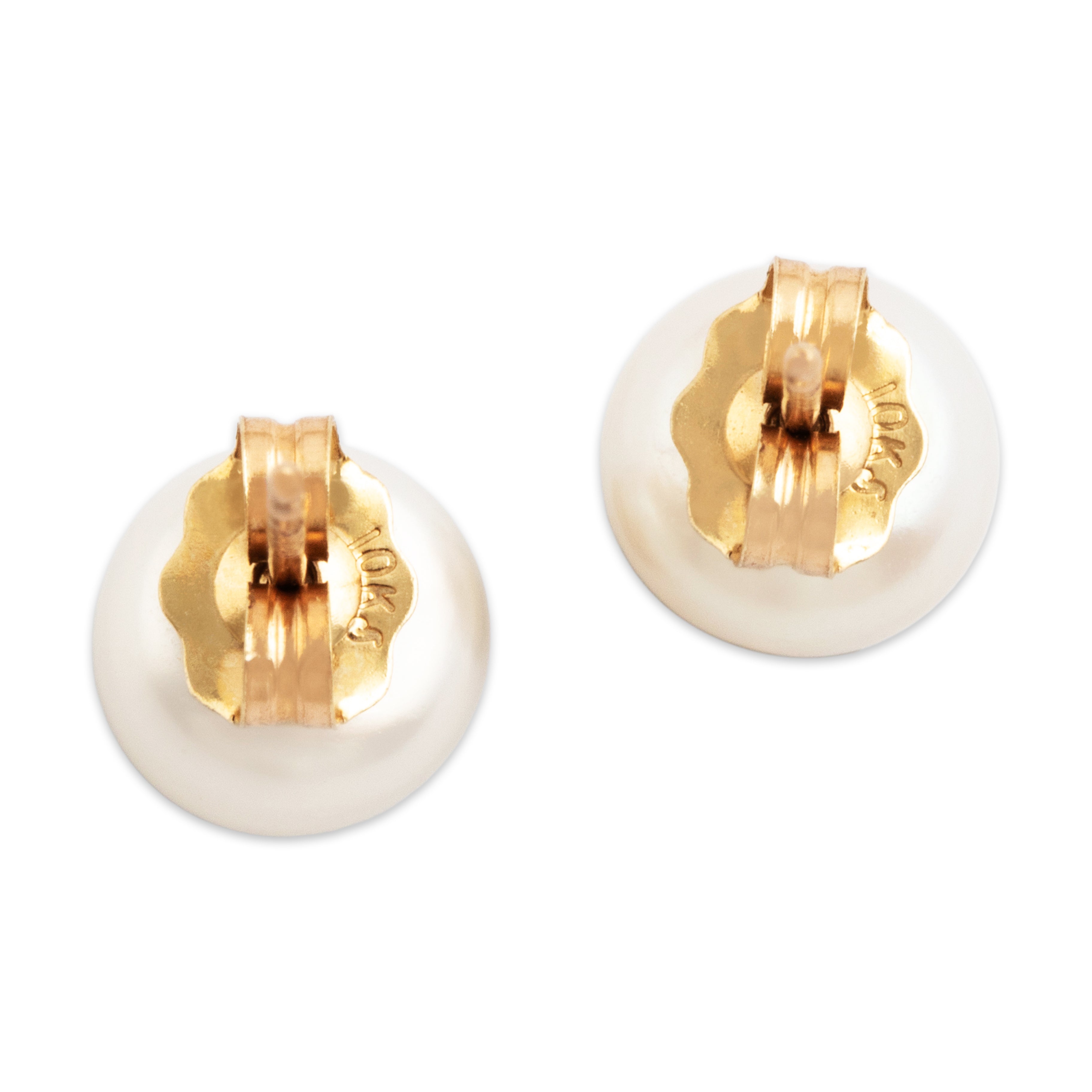 Discover a pair of 10k yellow gold stud earrings crafted by a vintage maker in a simple glow design featuring pearl. All gemstones are natural, earth-mined stones, unless stated otherwise.