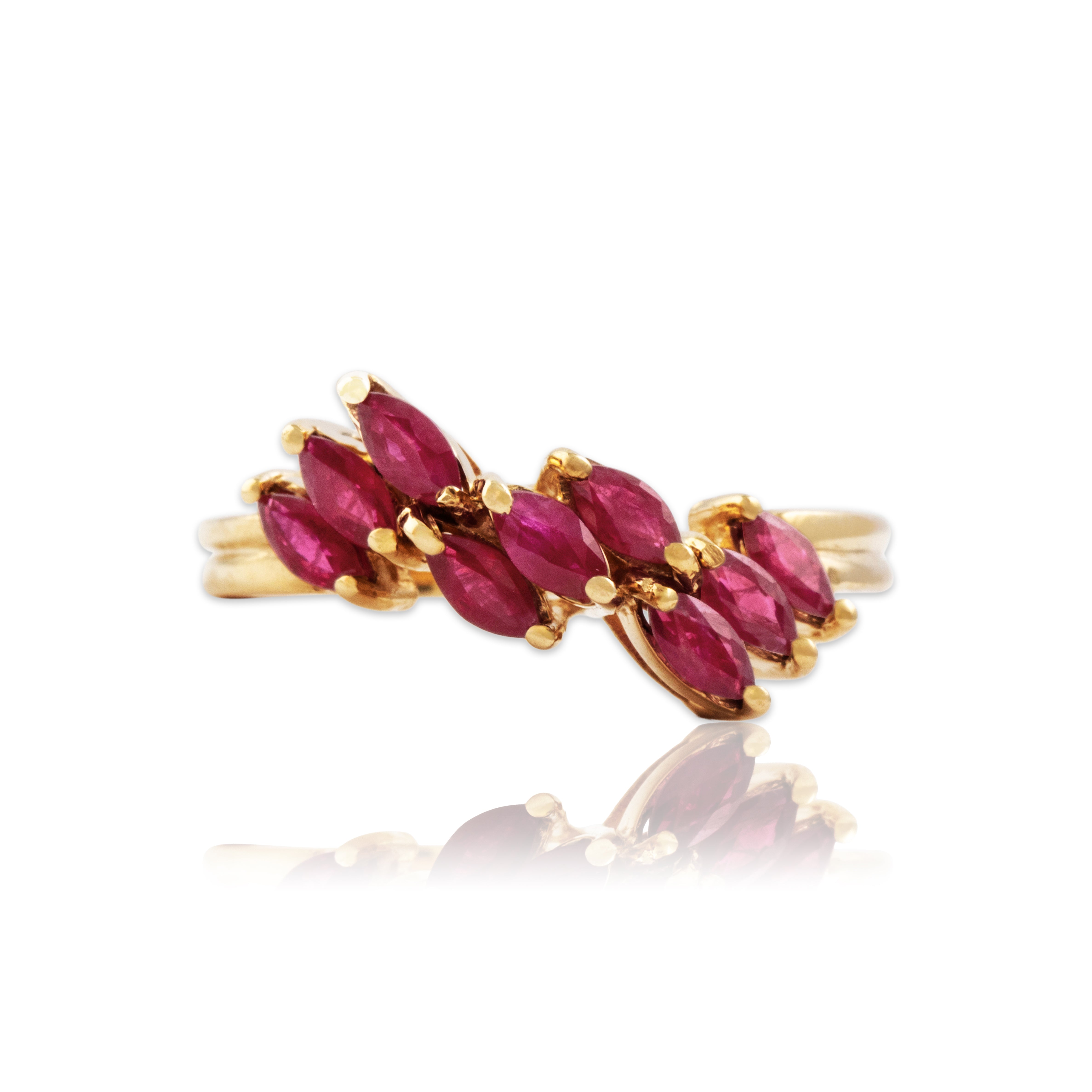 Vintage 10k Yellow Gold Ruby Fluttering Marquise Cluster Ring 6.00
