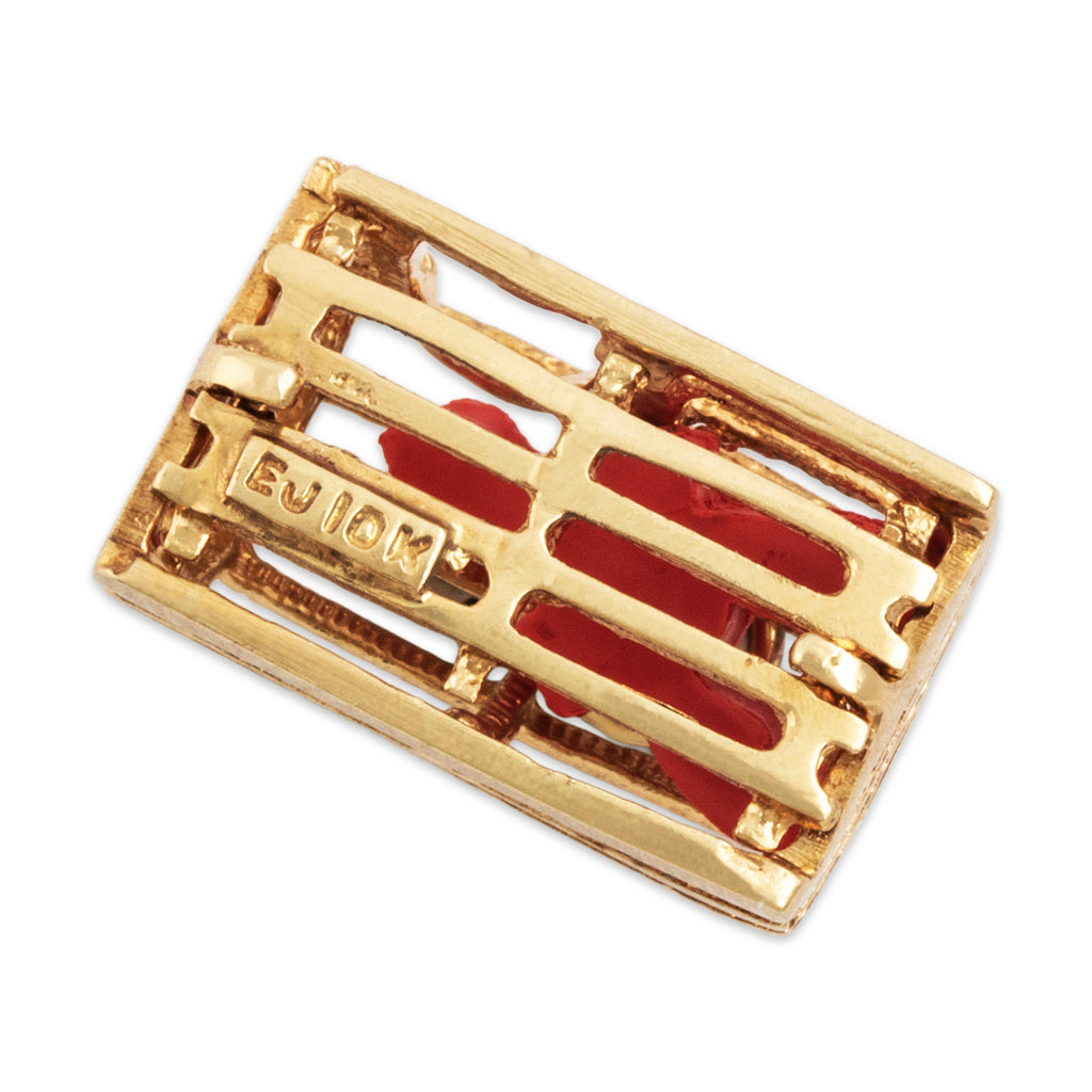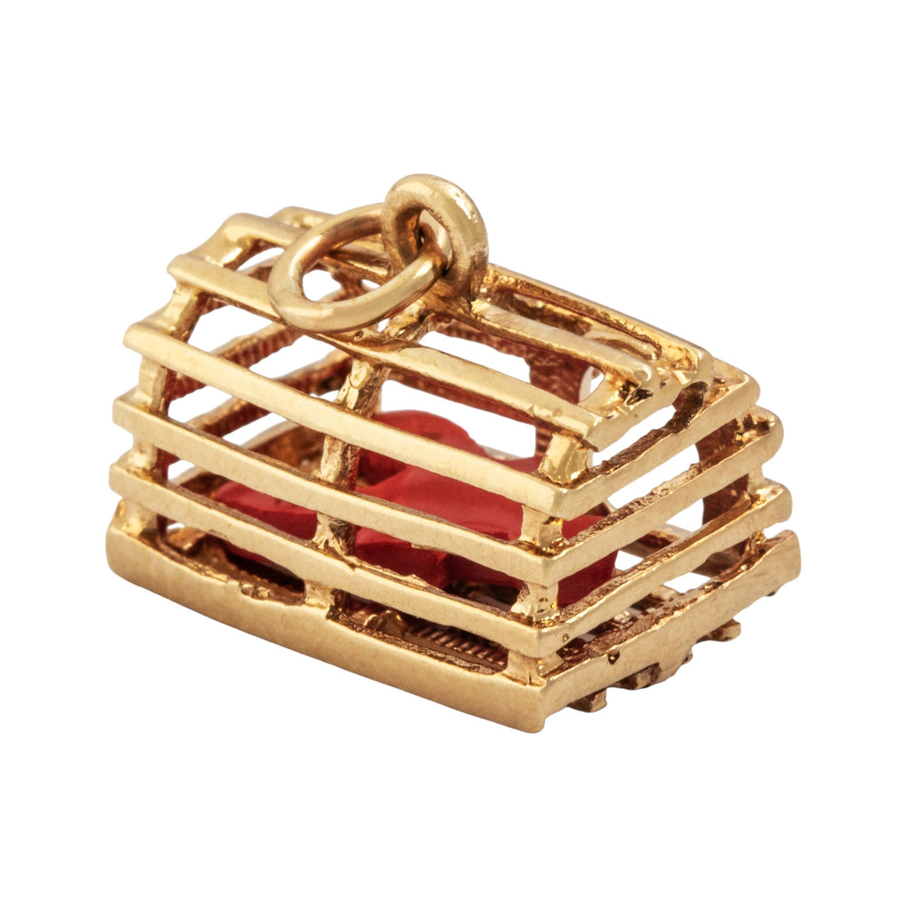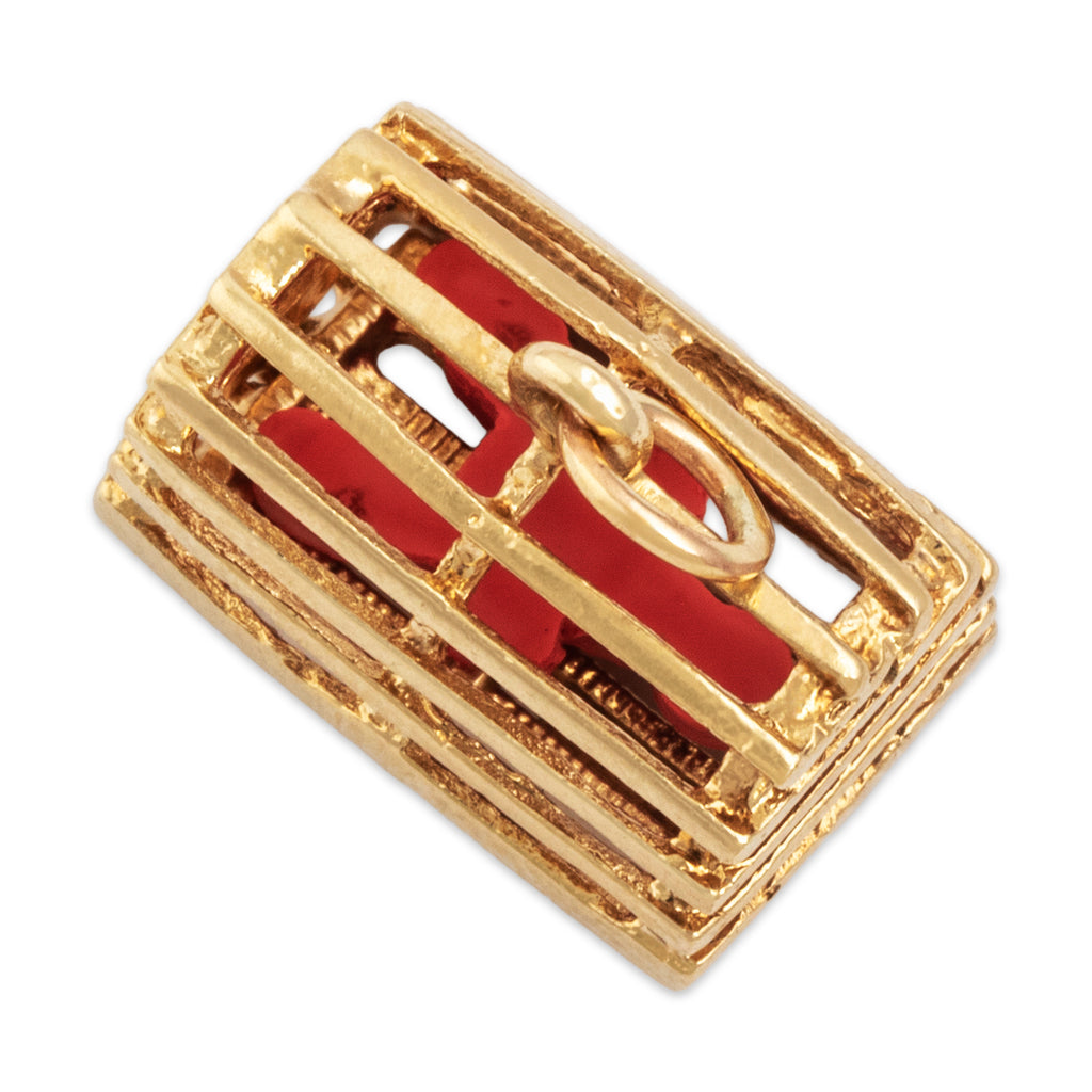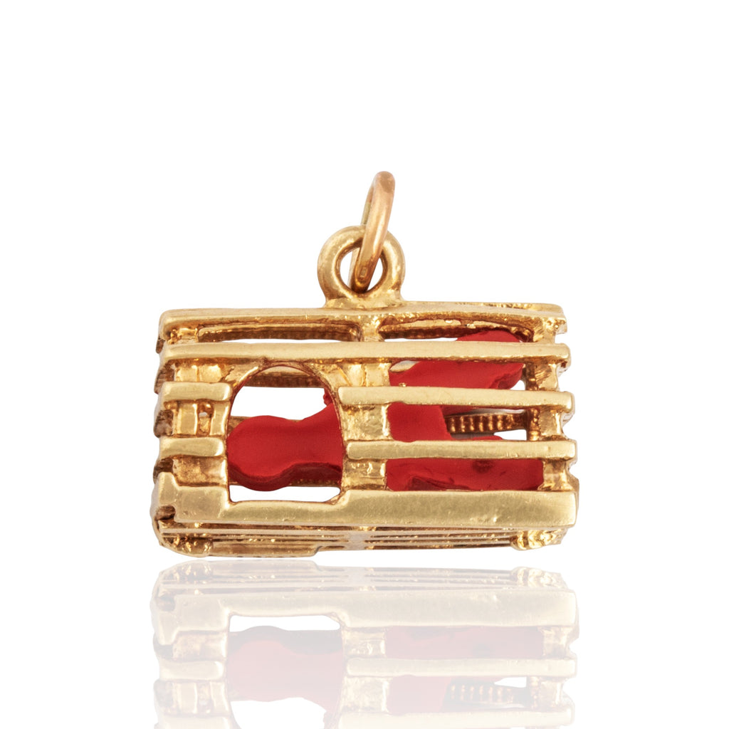 Discover this 10k yellow gold charm / pendant crafted by a vintage maker in a wonderful trapped red lobster design.