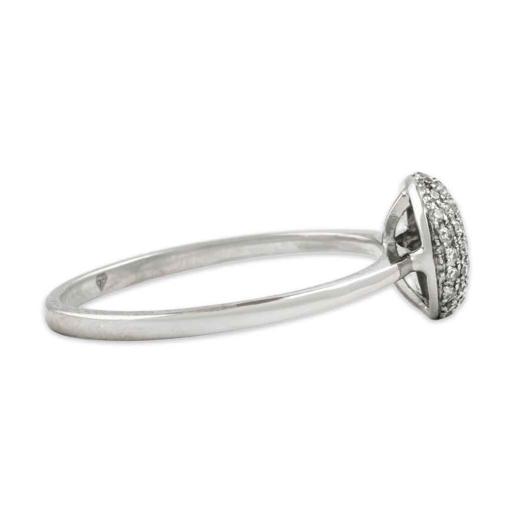 Discover this 14k white gold ring crafted by a vintage maker in a wonderful pavé-set round cluster design featuring diamond. All gemstones are natural, earth-mined stones, unless stated otherwise.