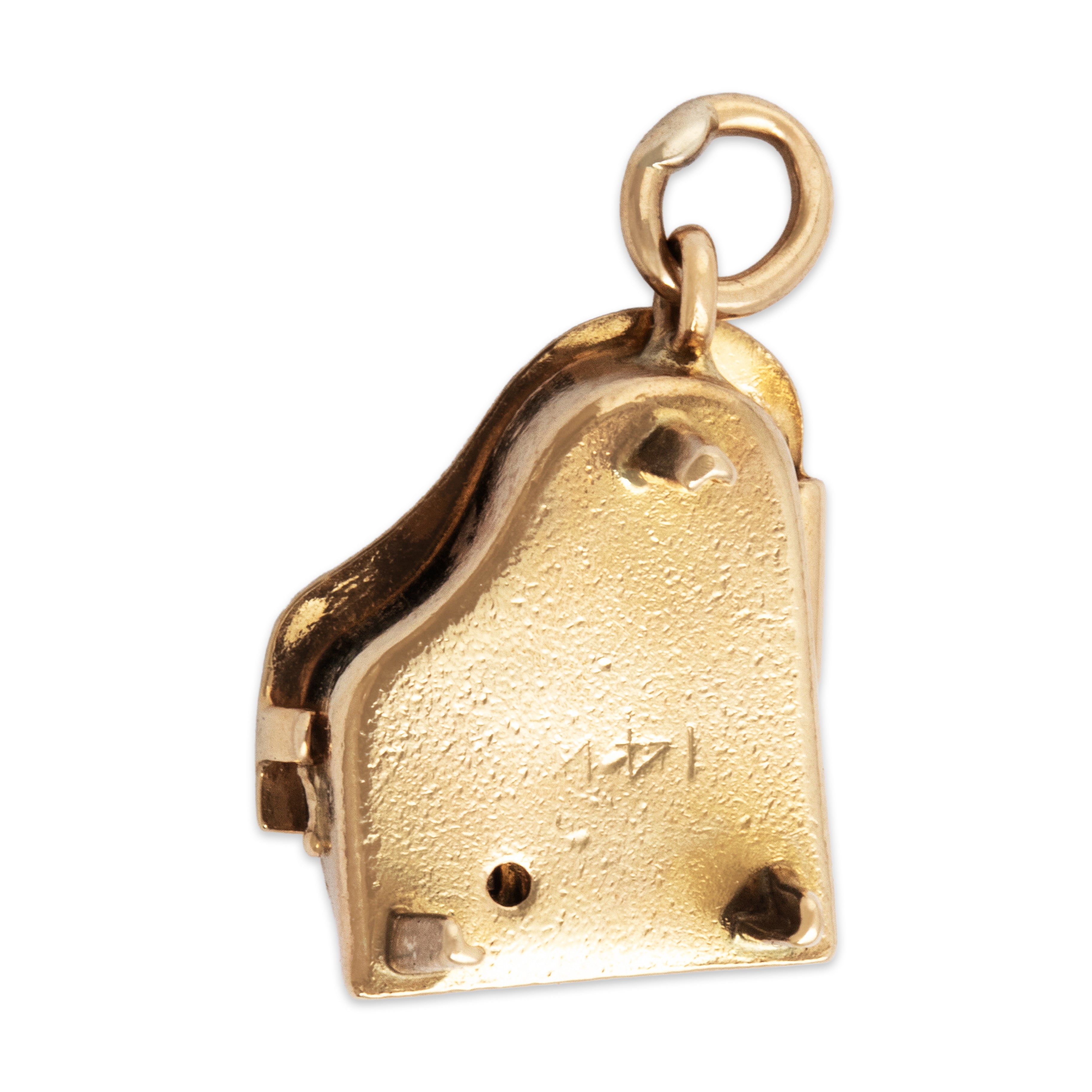 Appraiser Notes: Please note that the lid of the piano has an inscription that reads "MOTHER". This pendant has a smaller bail (chain opening). If you purchase this piece, we'd be delighted to attach it—free of charge—to a chain you provide. Alternatively, we can help you select a suitable chain from our collection to ensure a perfect match.