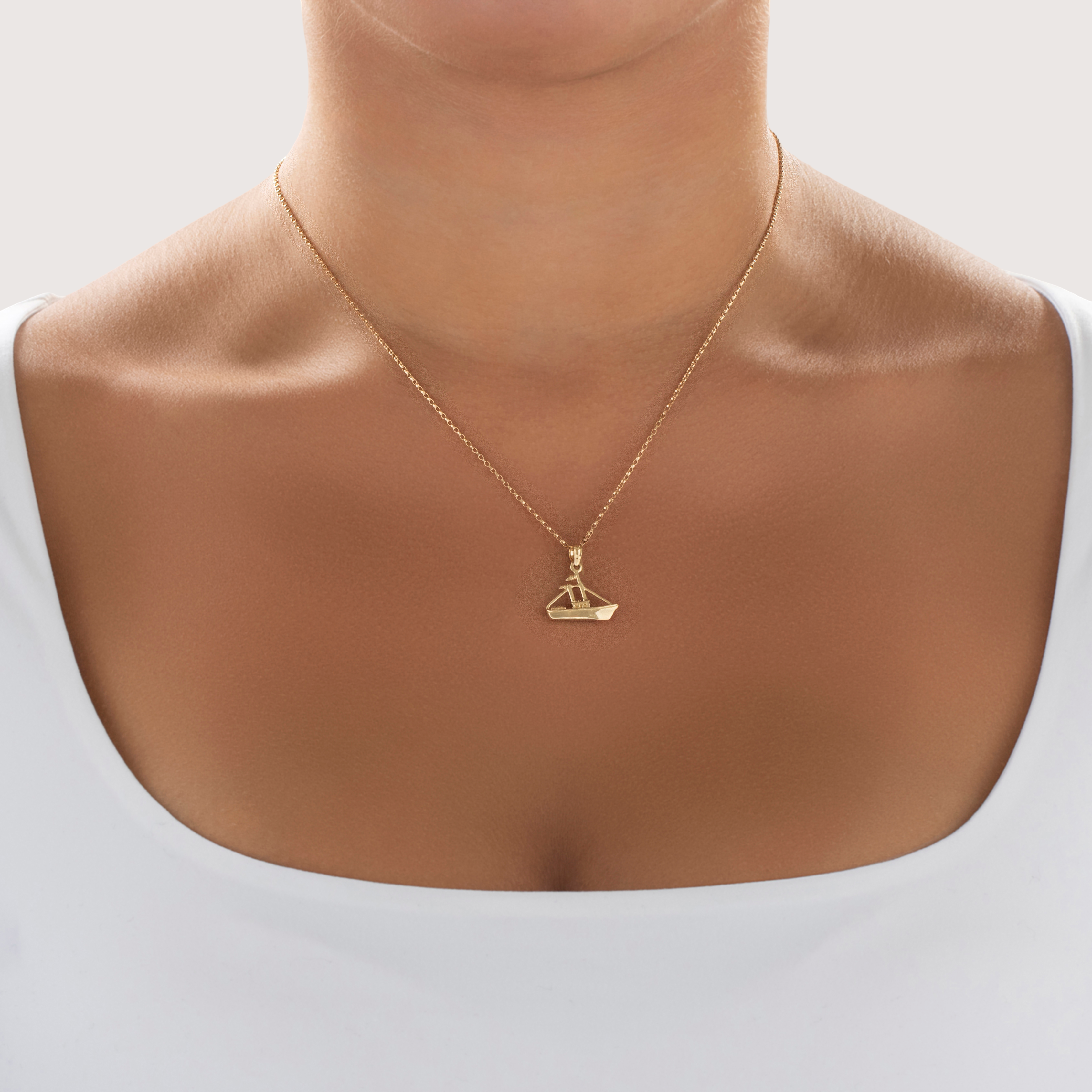 Discover this 14k yellow gold charm / pendant crafted by a vintage maker in a wonderful fun fishing boat design.