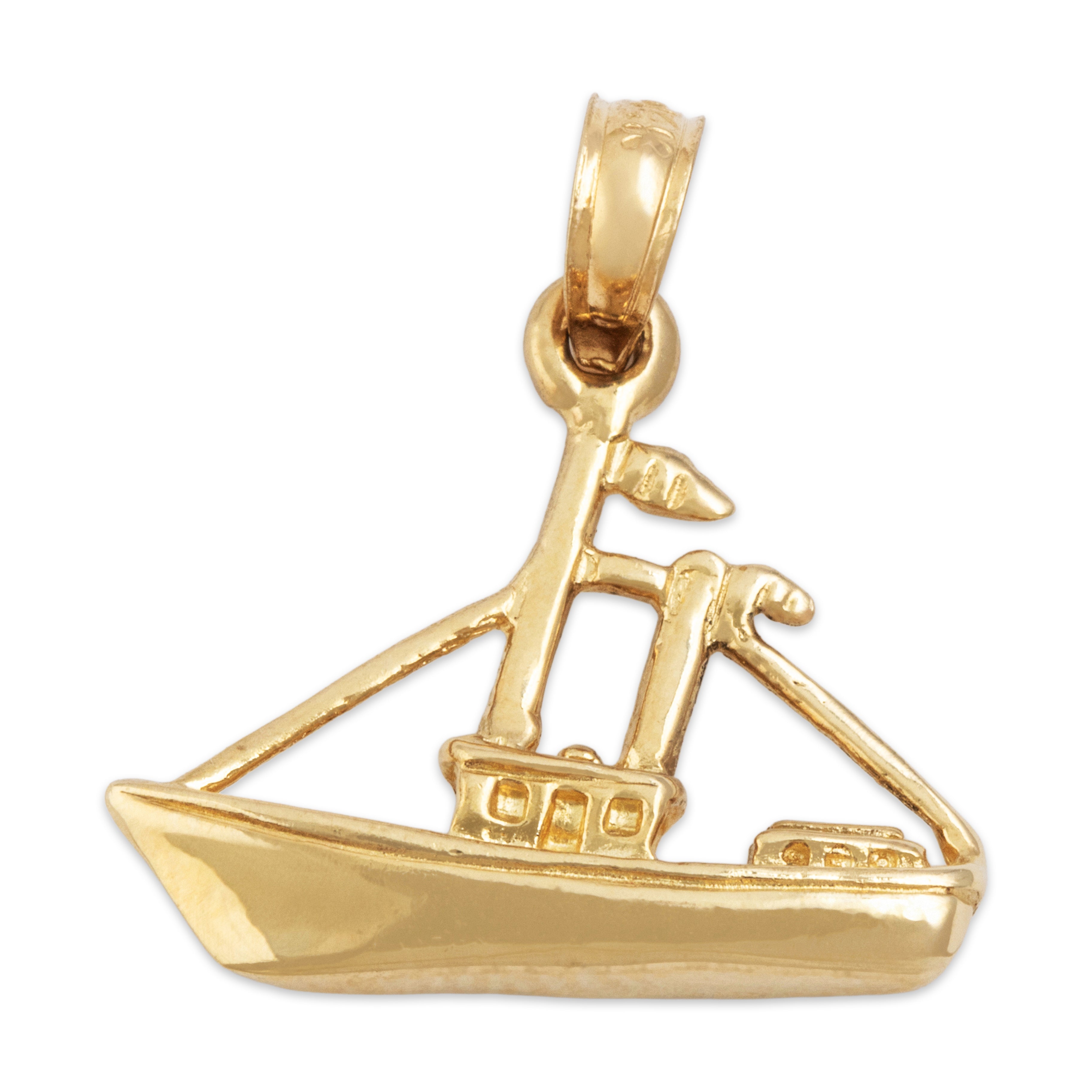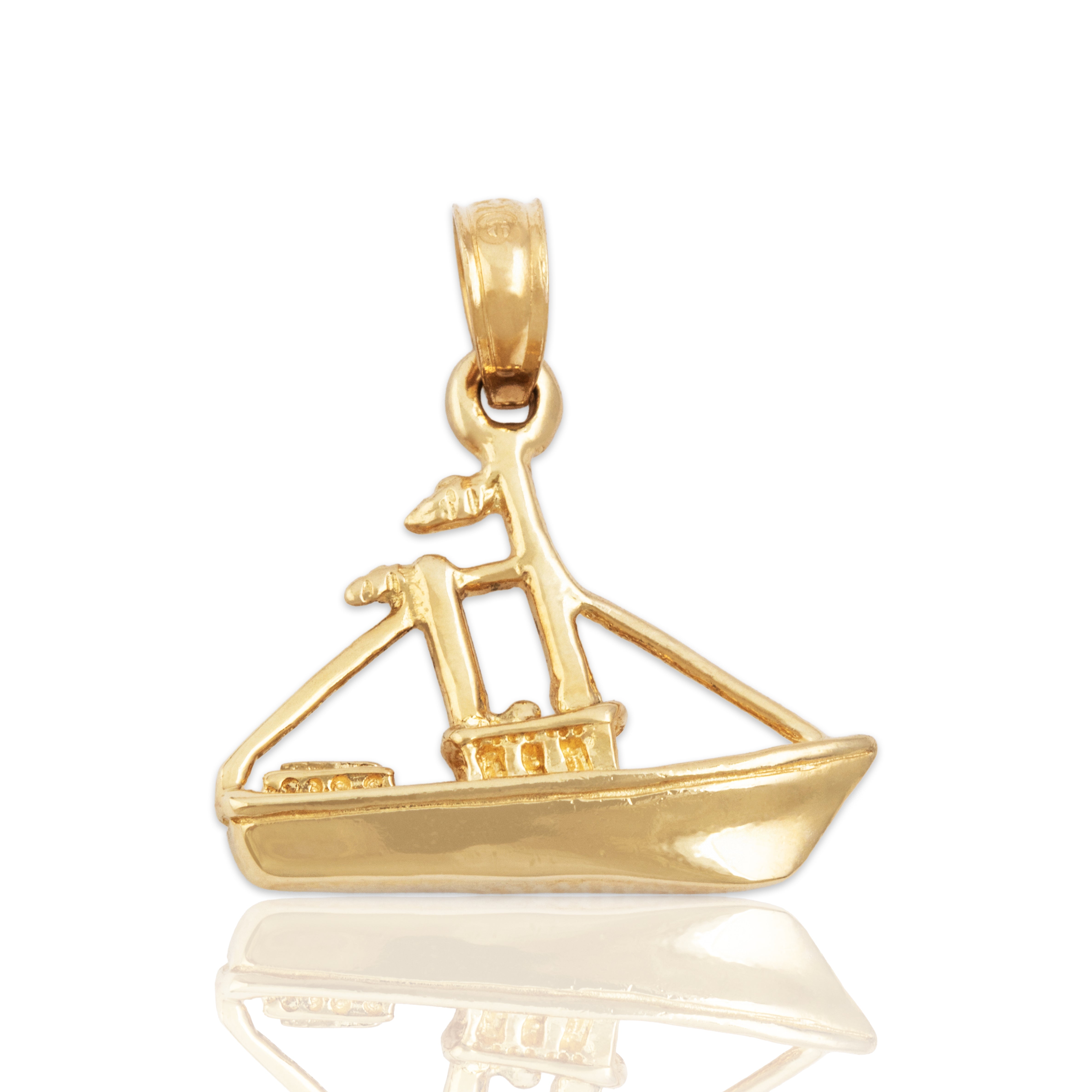 Vintage 14k Yellow Gold Dimensional Fishing Boat Charm / Pendant