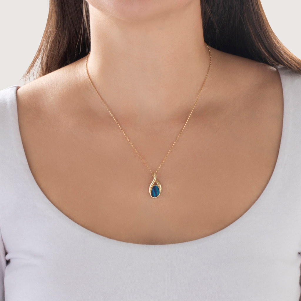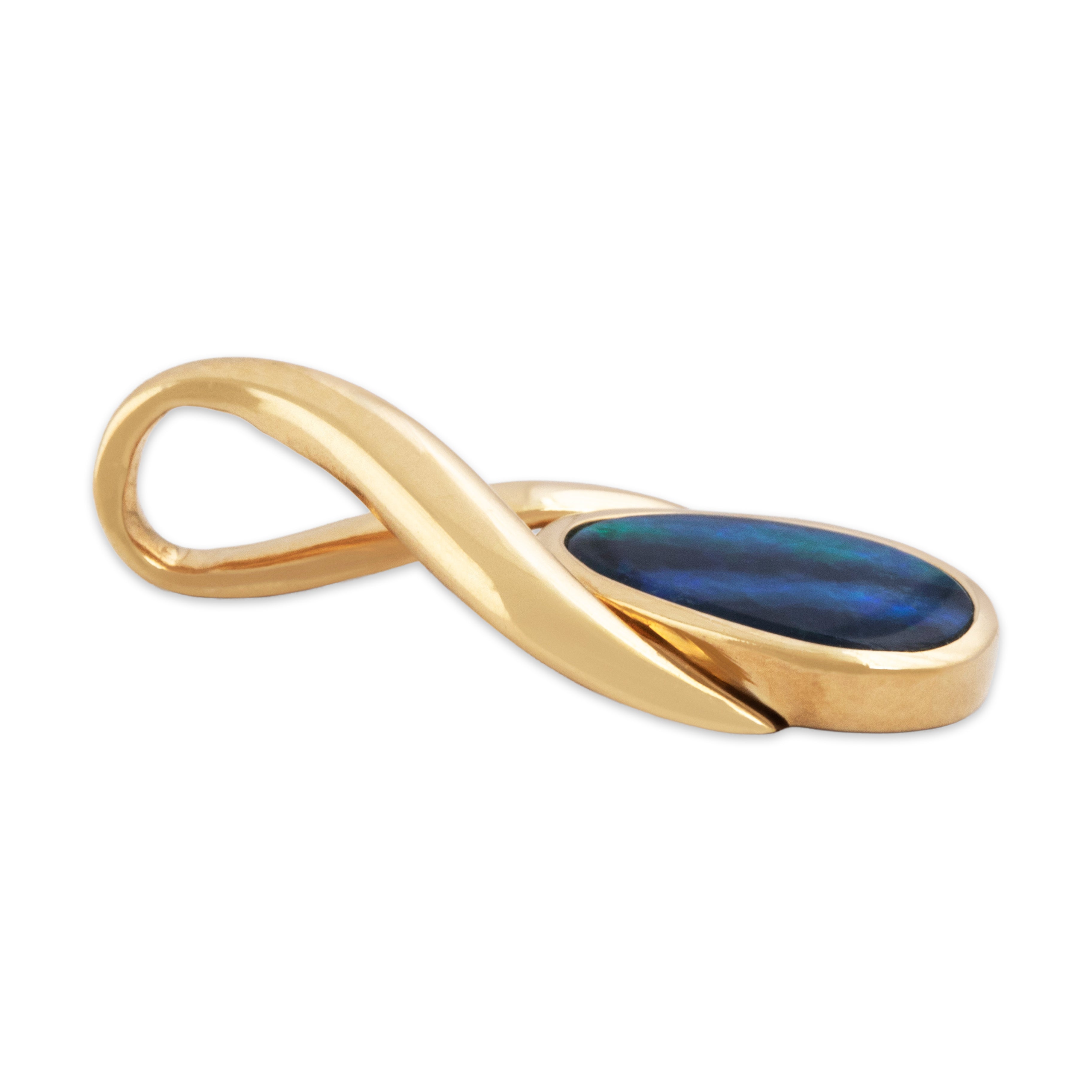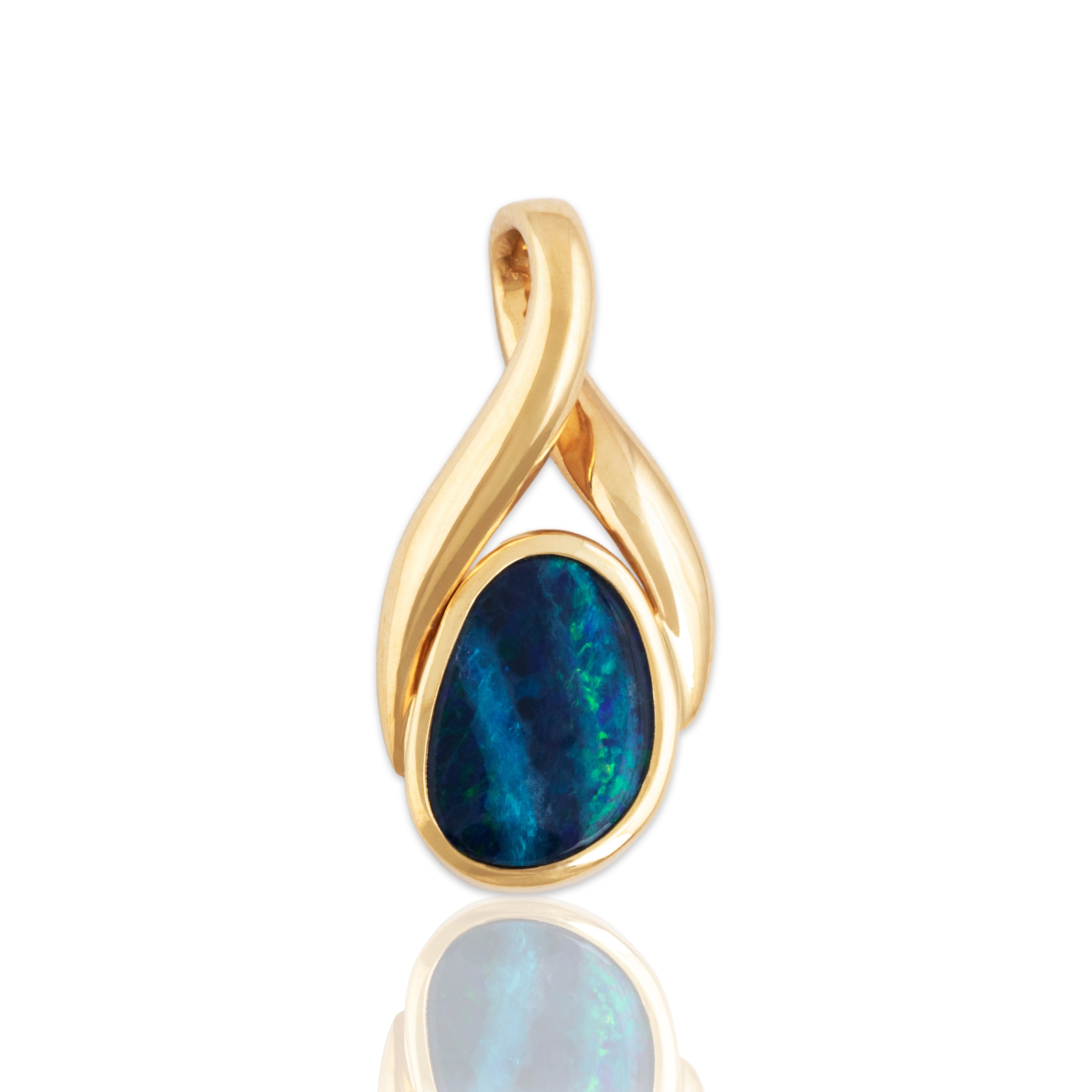 Appraiser Notes: An opal doublet is a thin slice of natural opal bonded to a dark backing, which enhances the stone’s color and brilliance.