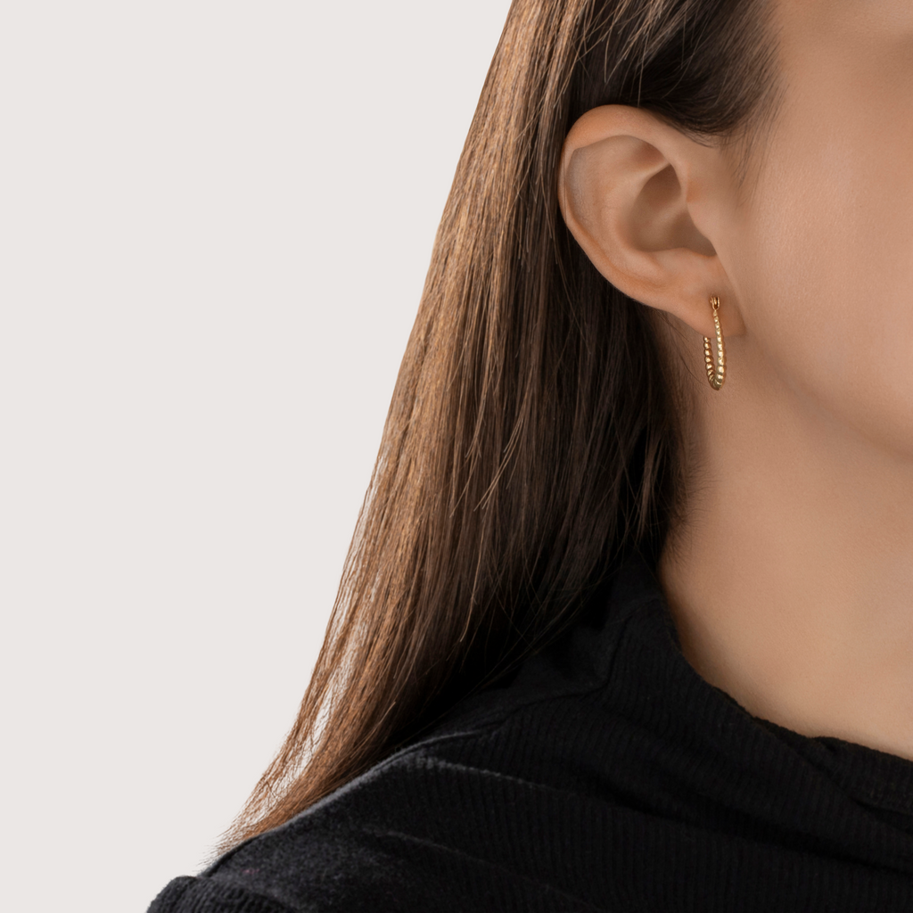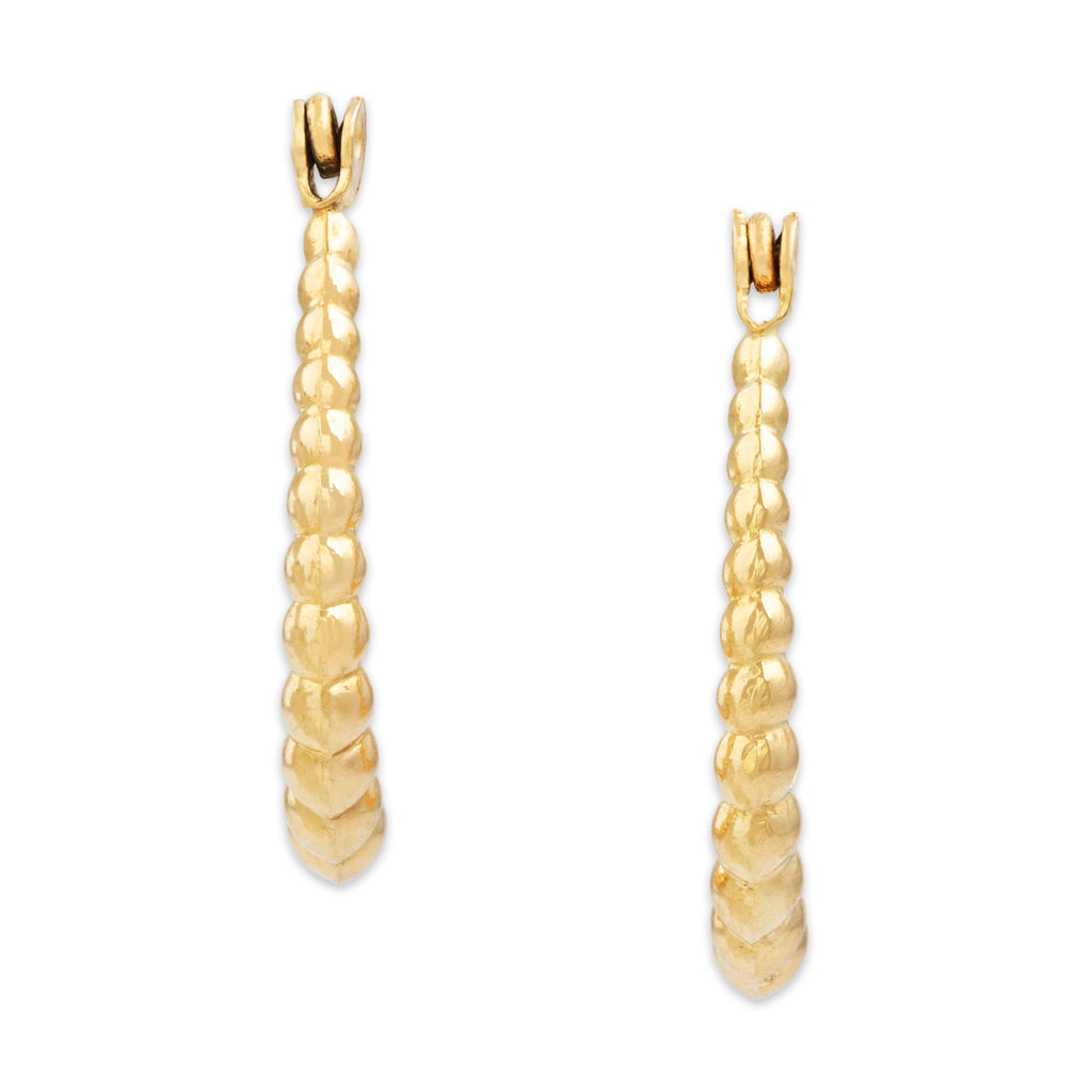 Discover this pair of lightweight 14k yellow gold hoop earrings crafted by a vintage maker in a wonderful chic roped texture design.