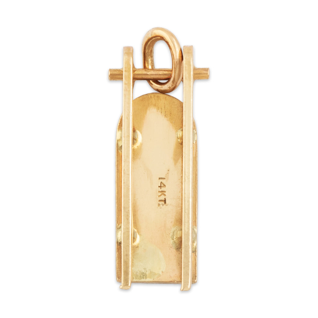 Discover this 14k yellow gold charm / pendant crafted by a vintage maker in a wonderful winter sled design.