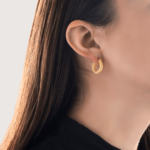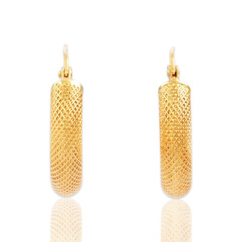 Vintage Italian 14k Yellow Gold Sparkling Rhombus Textured Hoop Earrings
