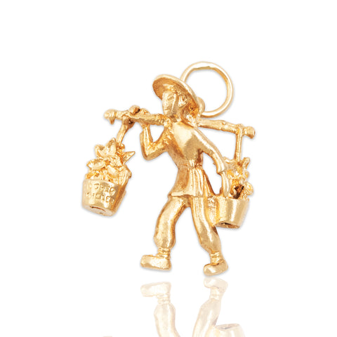 Vintage 14k Yellow Gold Detailed Figural Gardener Charm / Pendant