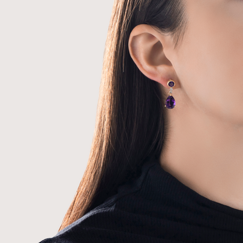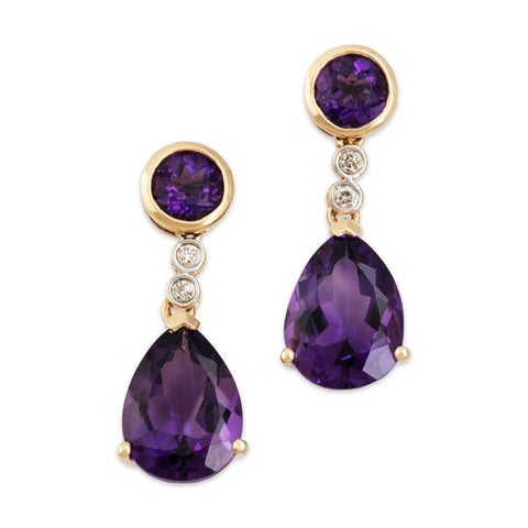 Vintage 14k Yellow Gold 5.3cttw Amethyst Diamond Teardrop Dangle Earrings