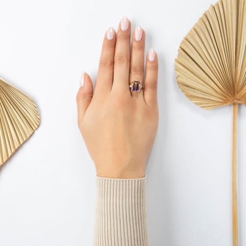 Vintage 14k Yellow Gold 5.3ct Ametrine Diamond Dramatic Cocktail Ring 6.75