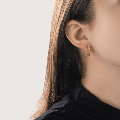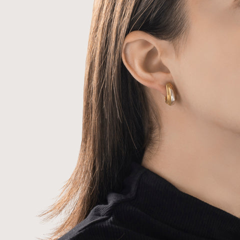 Vintage 14k Yellow & White Gold Ribbed Half-Hoop Earrings