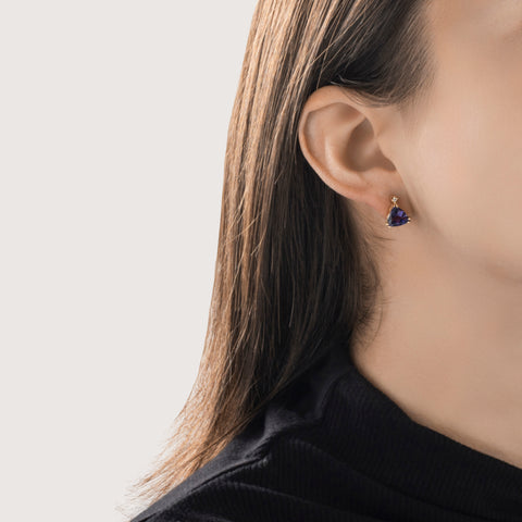 Vintage 14k Yellow Gold 2.2cttw Iolite Diamond Trilliant Stud Earrings