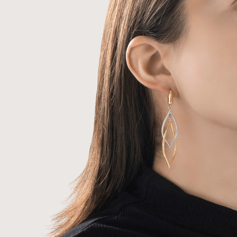 Vintage Italian Large 14k Yellow & White Gold Long Leaf Dangle Earrings